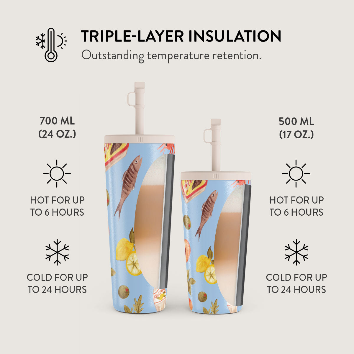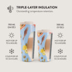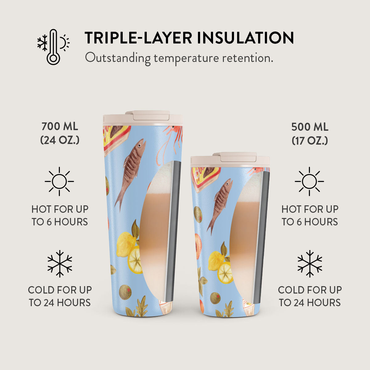 • 700 ml (24 oz.)Travel Mug: Keeps drinks hot for 6 hours. cold for 24 hours.