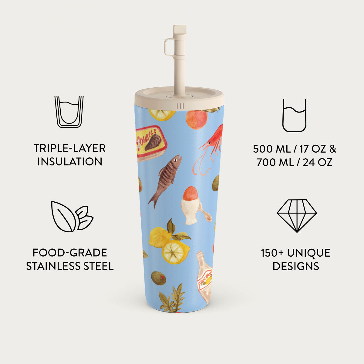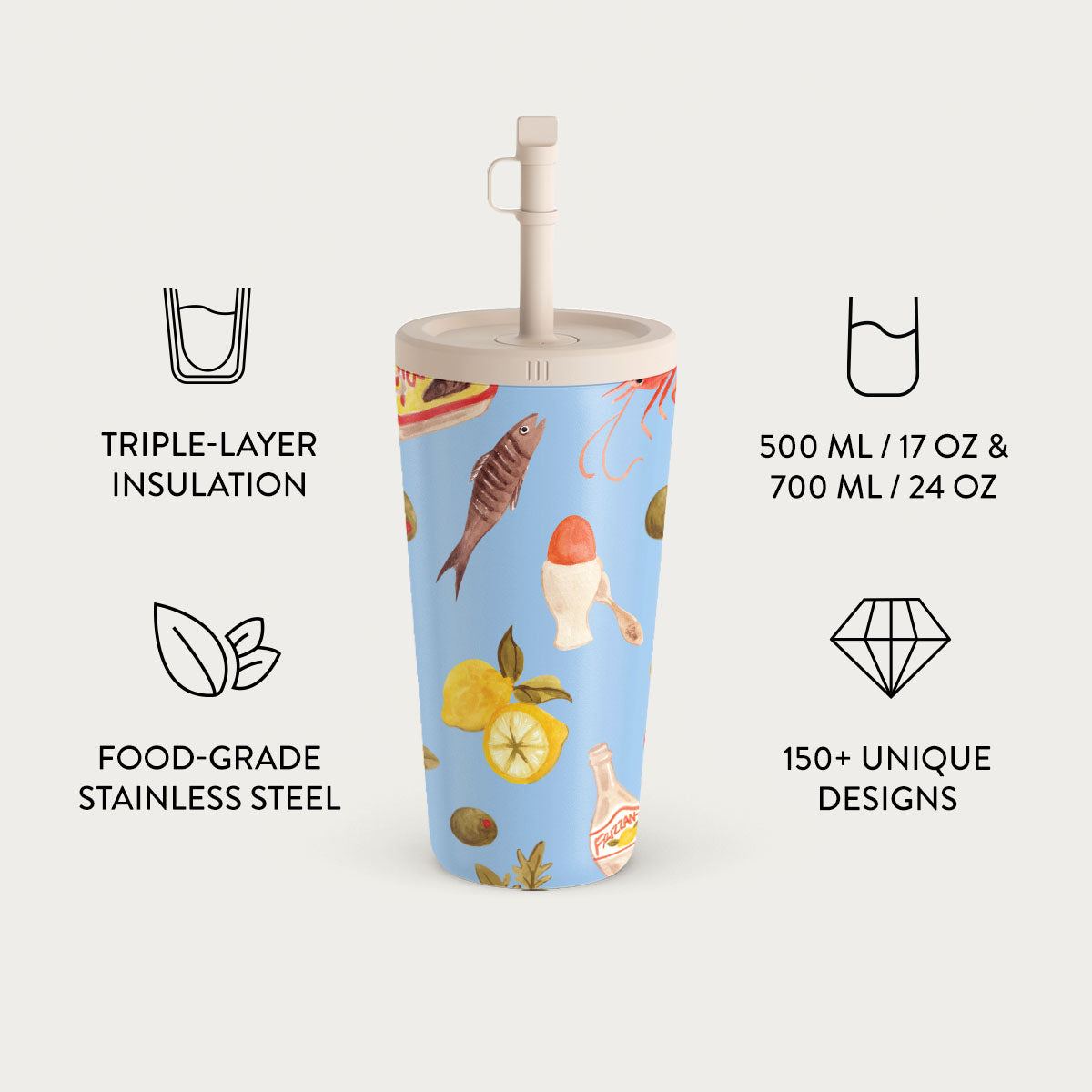 Choose from over 150 unique BURGA designs. each paired with one of six vibrant flap or straw lid colors. Our team matches the lid to the design for a seamless and stylish look.
