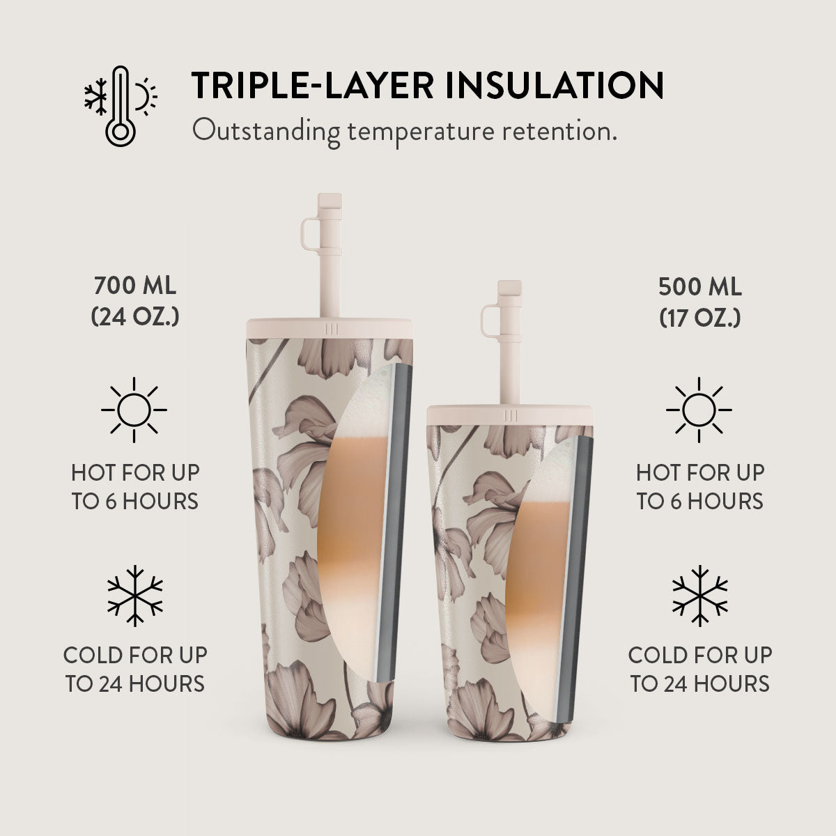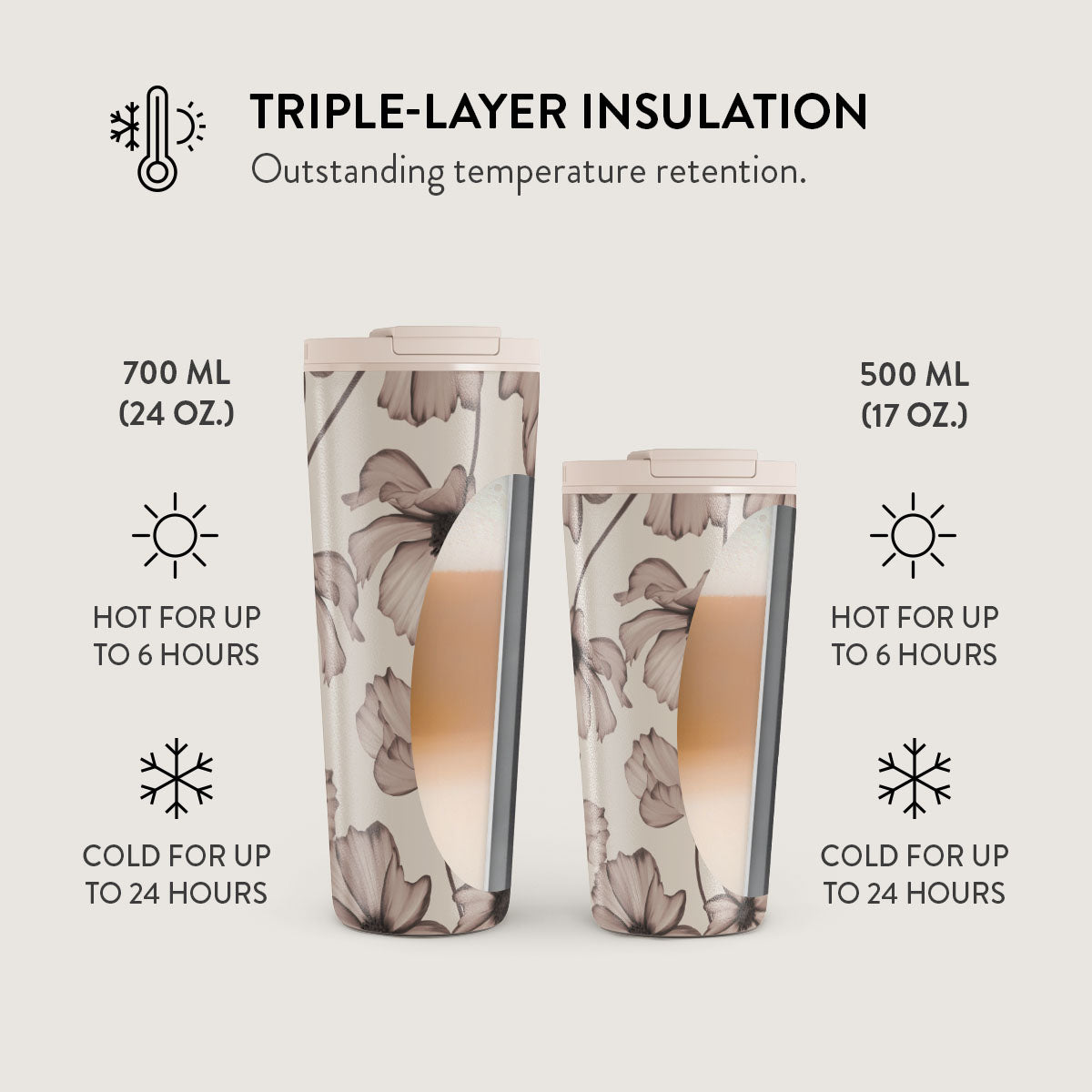 700 ml (24 oz.)Travel Mug: Keeps drinks hot for 6 hours. cold for 24 hours.