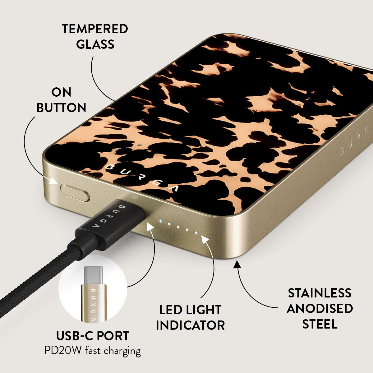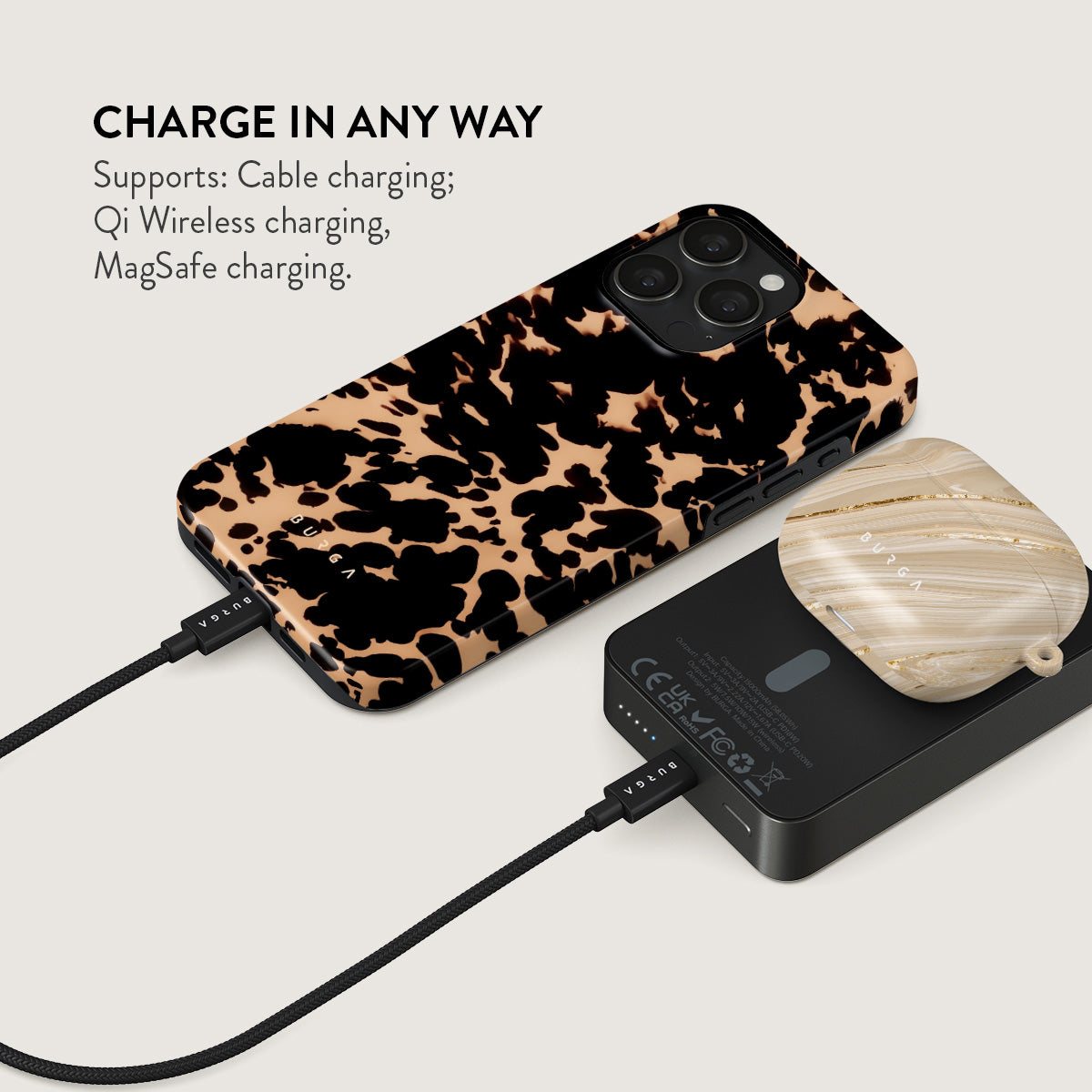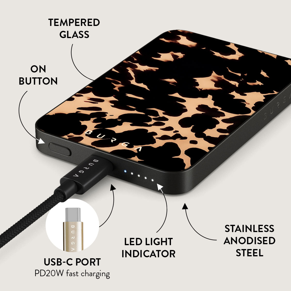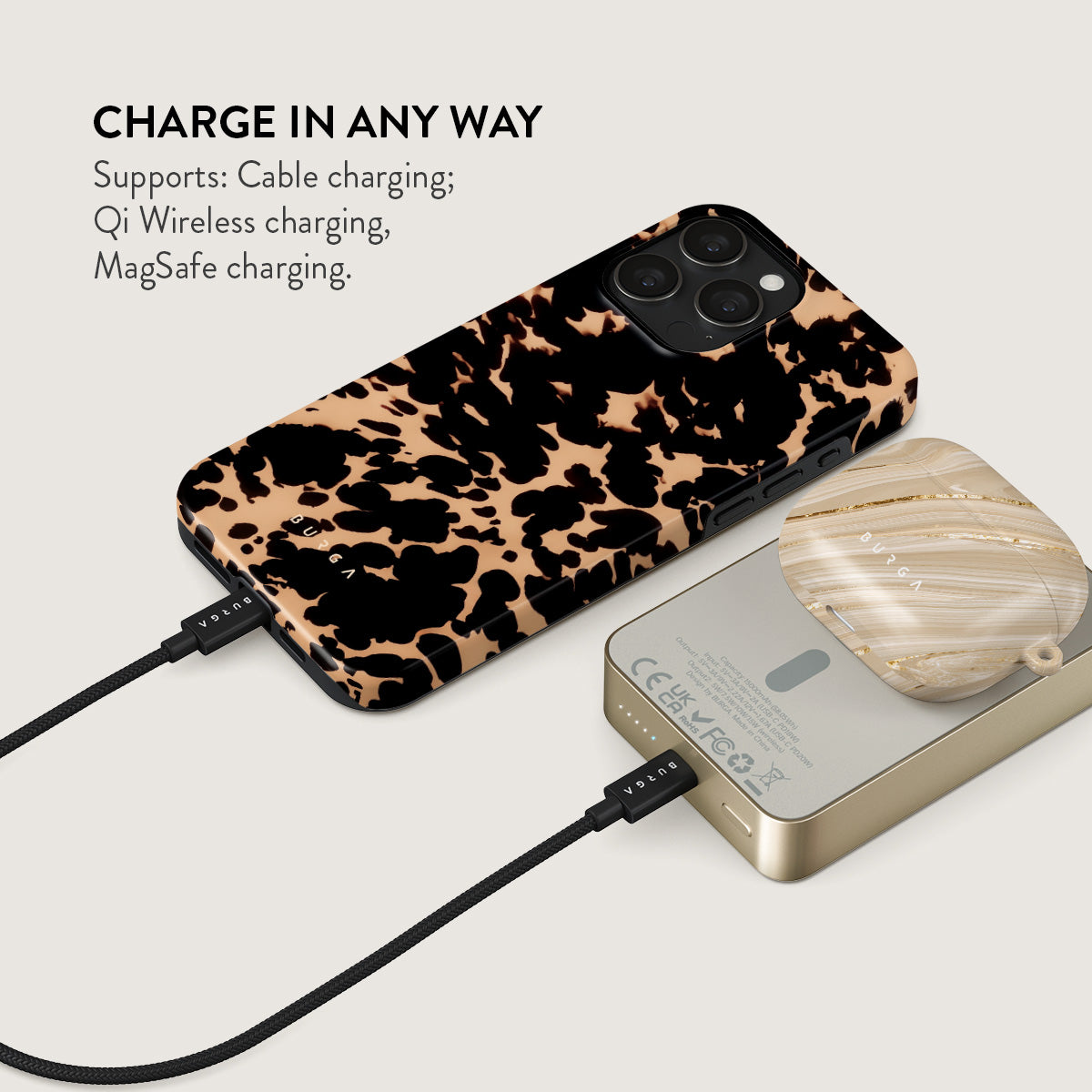 Small but mighty. Stylish but practical. Meet the new and improved BURGA Magnetic Power Bank – your pocket-sized savior with a 5.000 / 10.000 / 15.000 mAh punch. It’s where sleek design meets BURGA’s signature style. made to keep you charged and turning heads wherever you go.