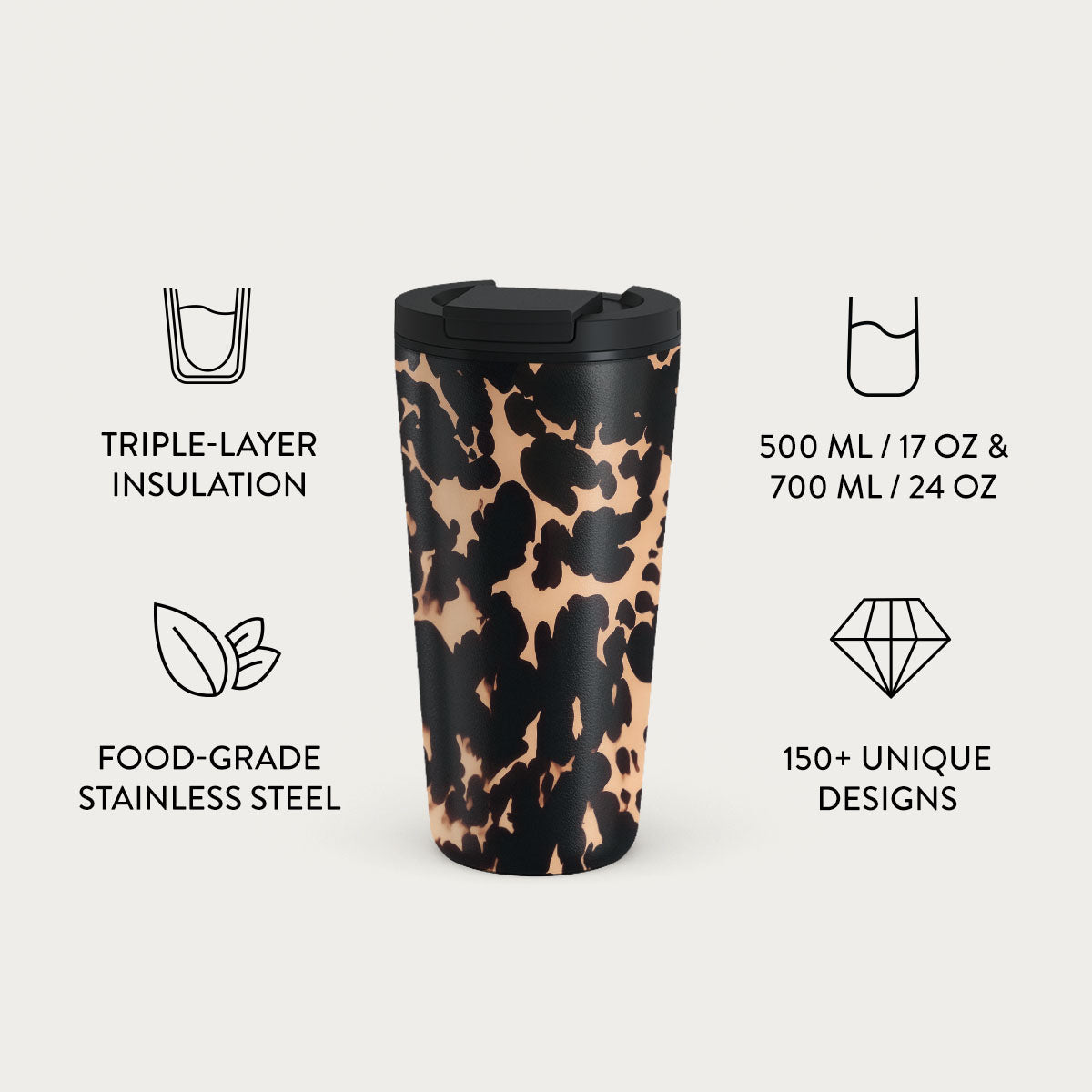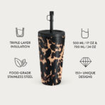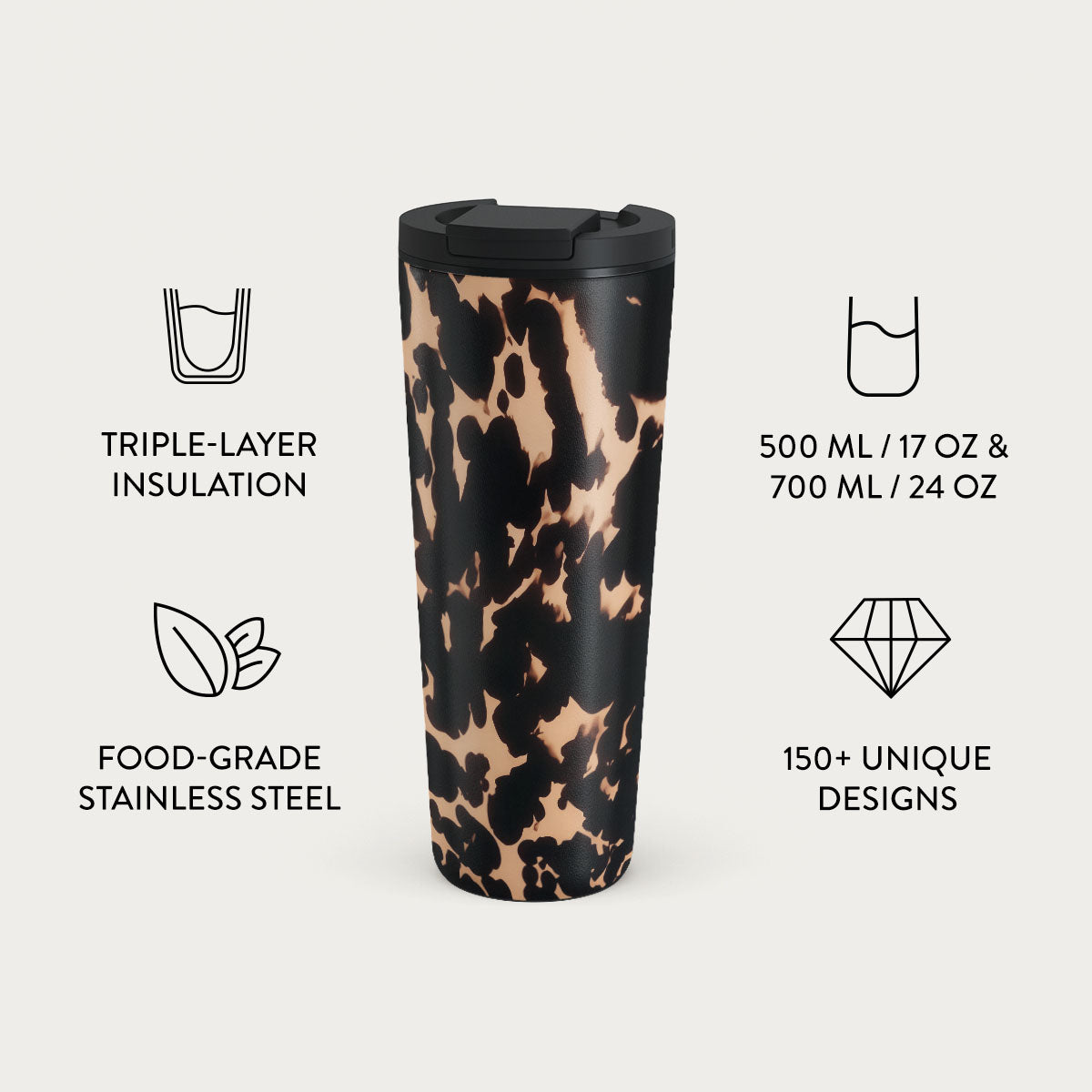 • 500 ml (17 oz.) Travel Mug: Keeps drinks hot for 6 hours. cold for 24 hours.