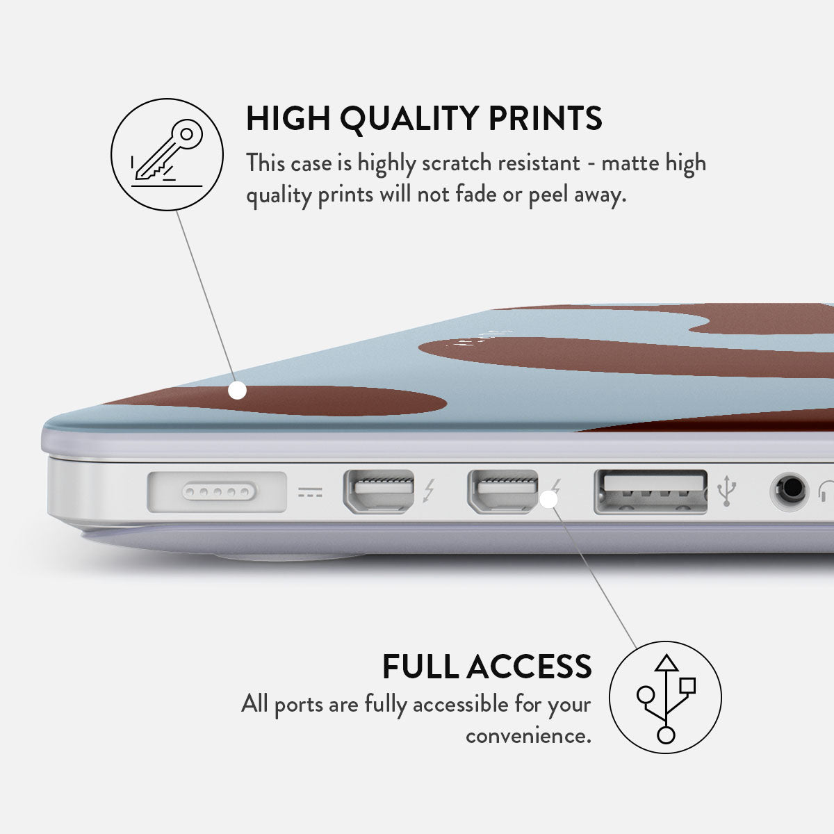 Either way. the BURGA MacBook case is the essential accessory for your everyday portable work-horse. It comes with two separate covers for the top and bottom of your laptop for that 360 protection. Despite this fact. it still maintains a slim profile and doesn’t make your MacBook feel bulky. The bottom cover also has a vent to keep your laptop from overheating when sitting. for example… well… on your lap! What else could you want from a MacBook cover? That’s right – easily accessible ports. Got that covered (or rather. NOT covered) as well.