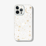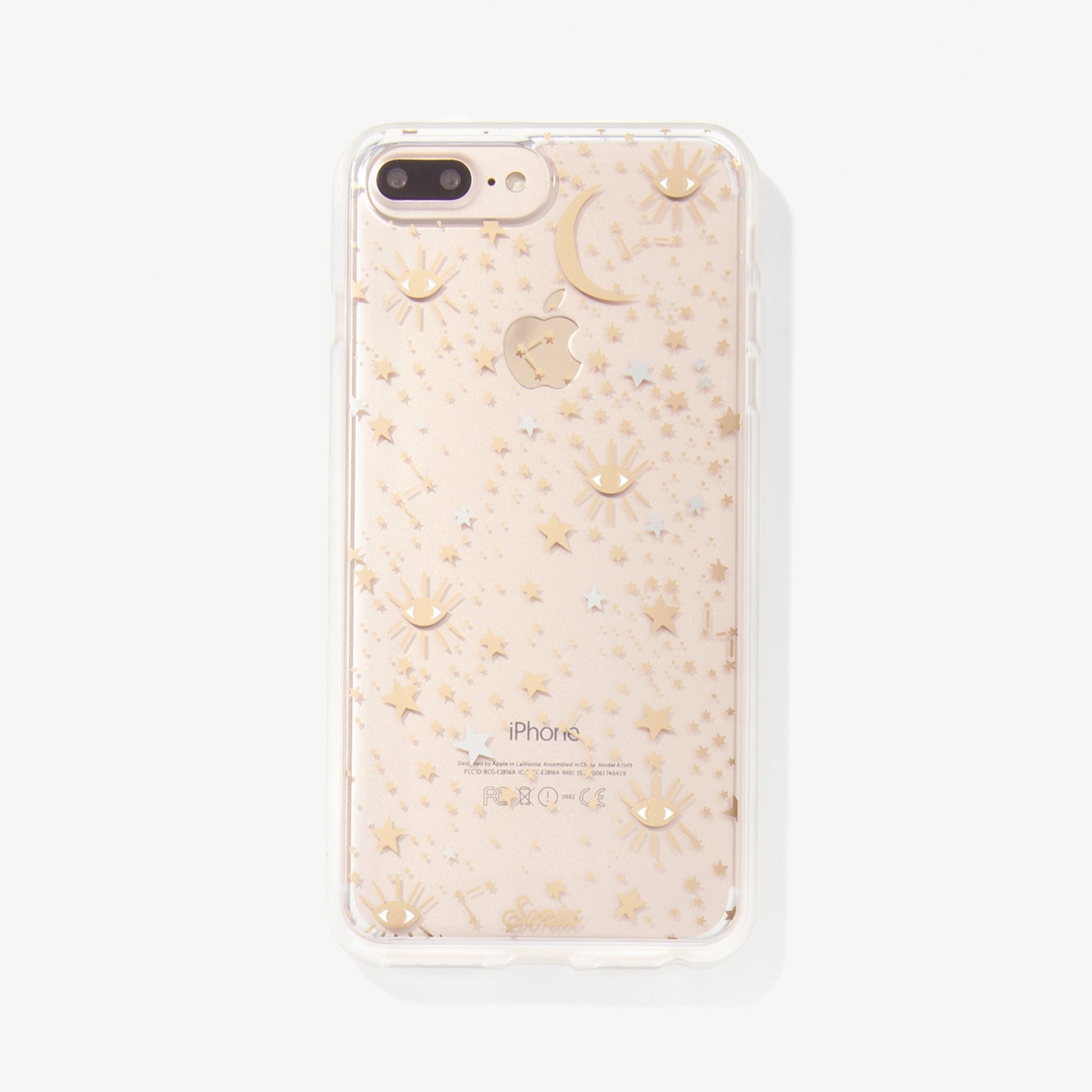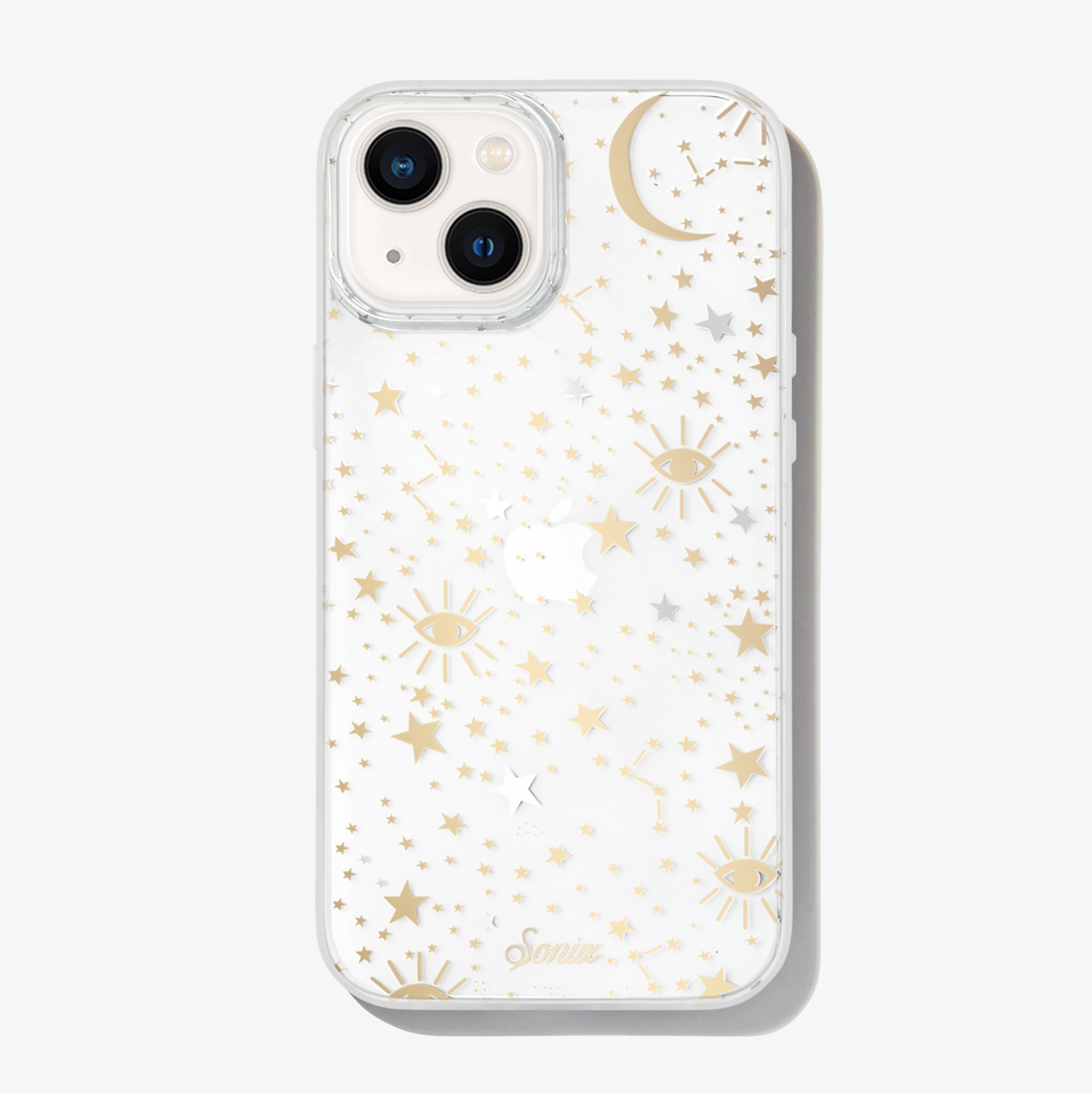 Cosmic iPhone case is a Sonix original. This case features stars. moons. and eyes foiled in gold and silver – making it a fan favorite. This clear coat iPhone case showcases the color of your phone!