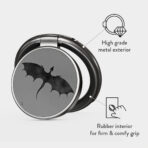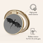 This design features: bats. dragons. gray sky. night skies. shadowy creatures.