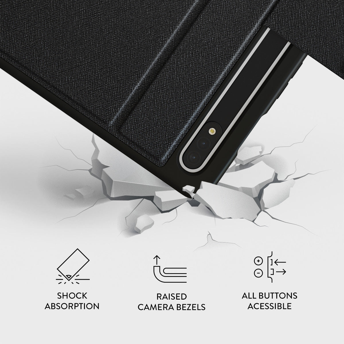- Use as a stand with adjustable Samsung Galaxy Tab angles for comfortable viewing & typing.