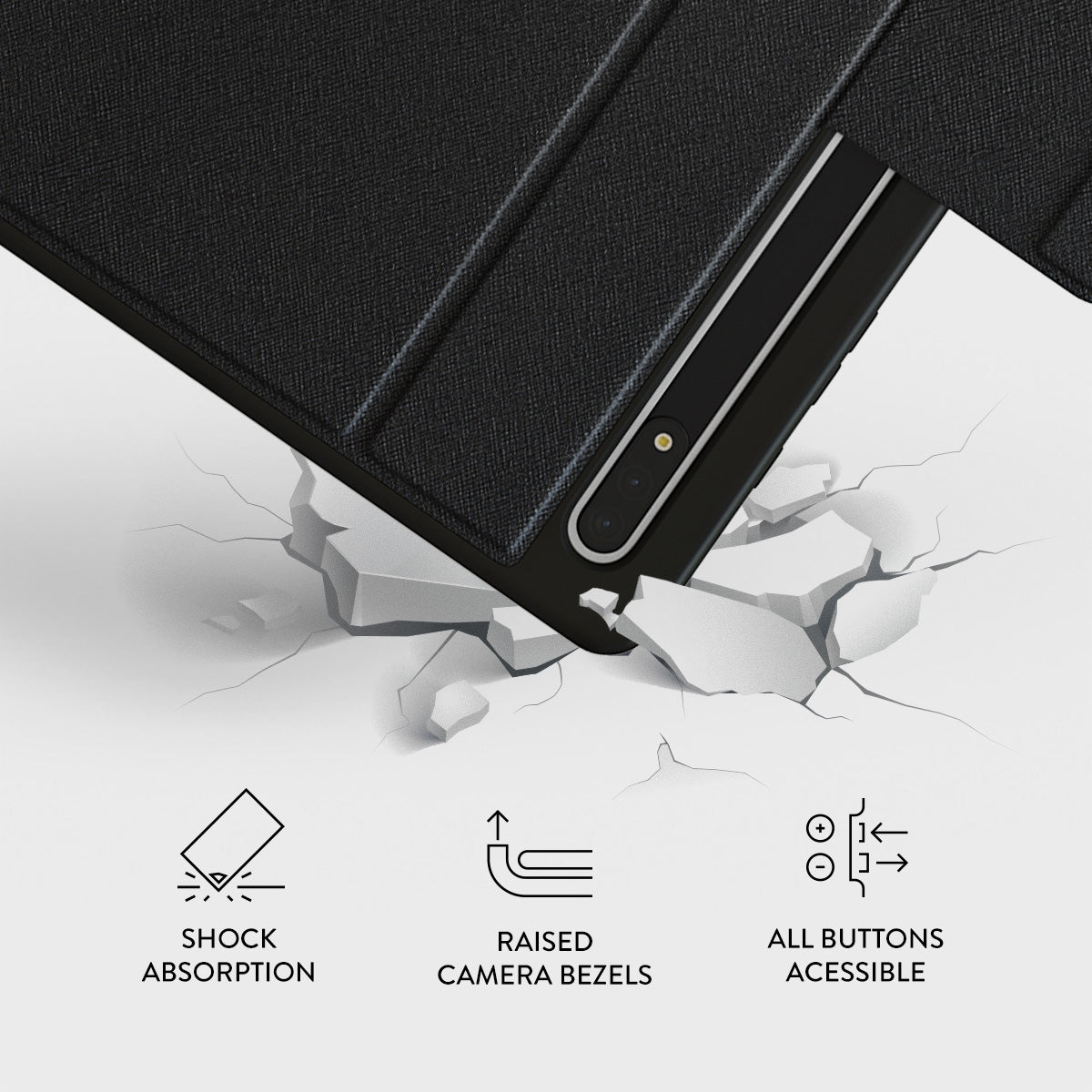 • Raised camera and screen bezels for maximum protection.