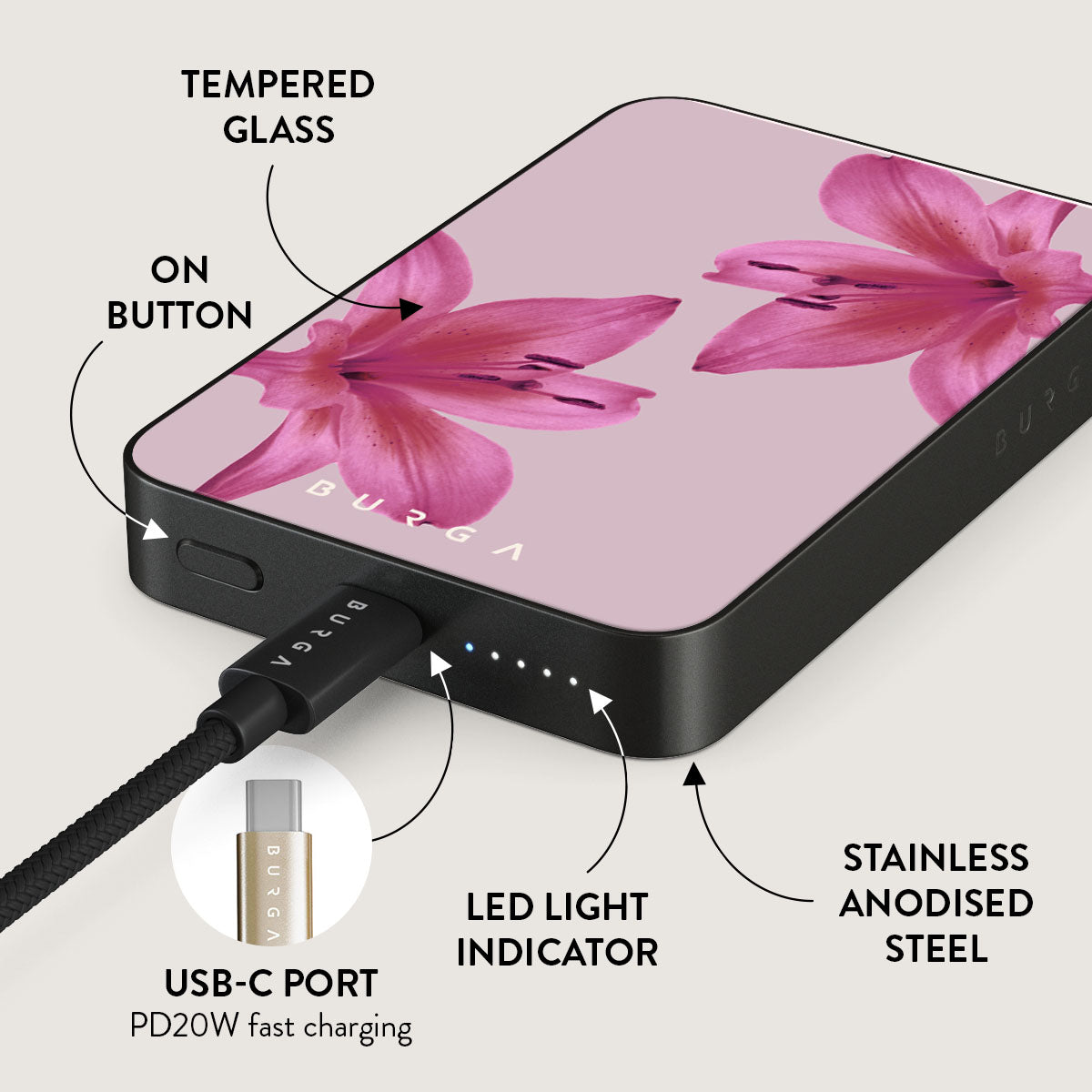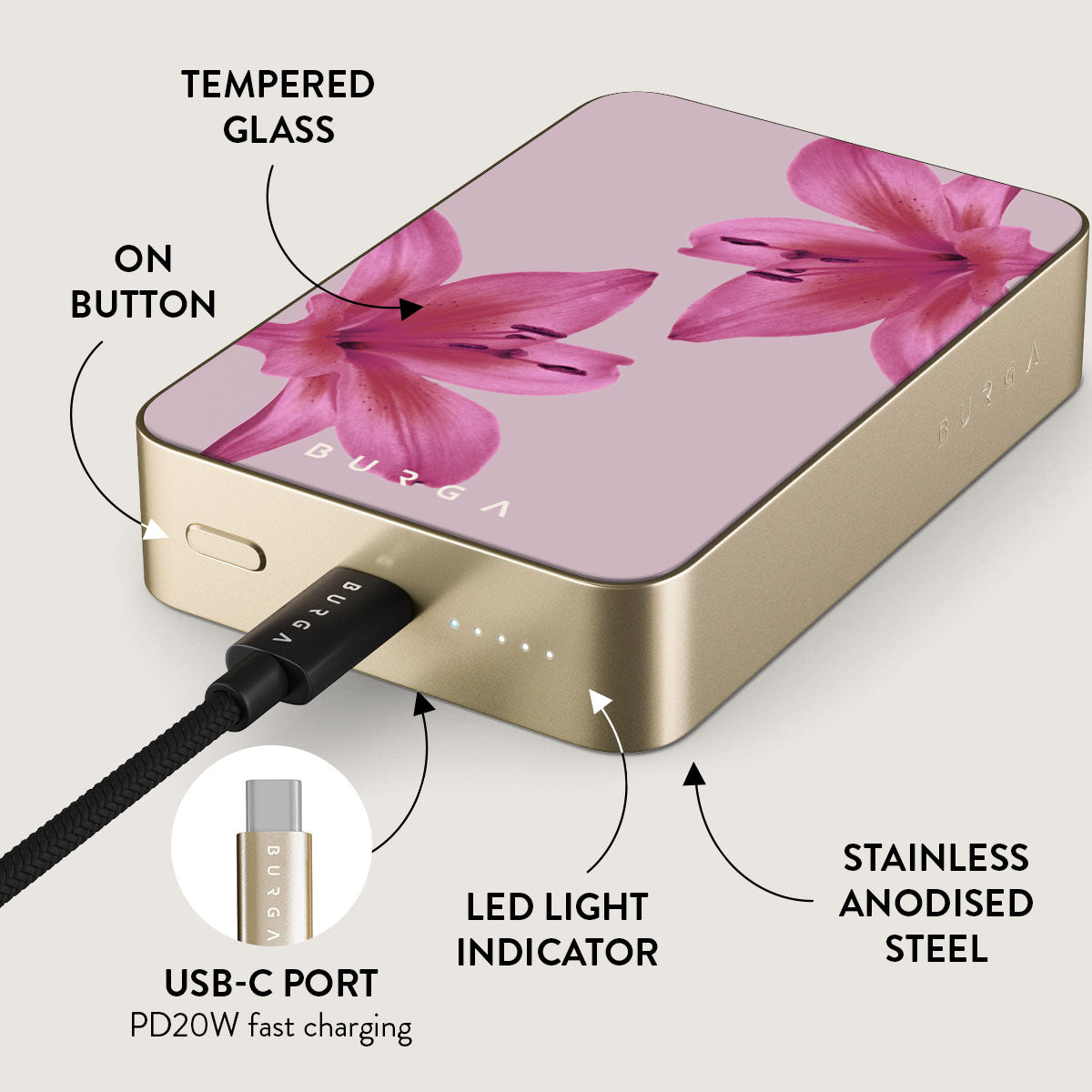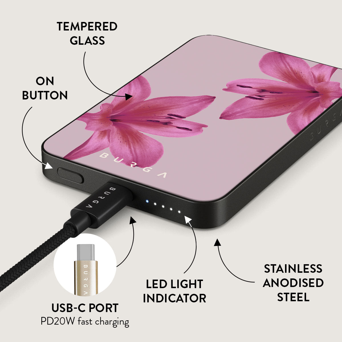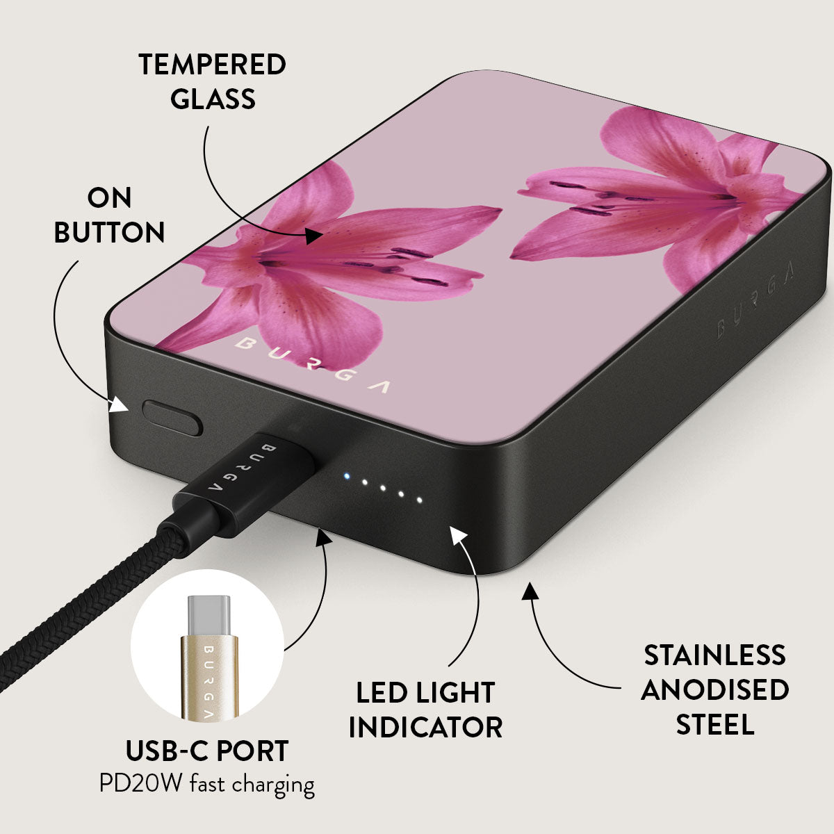 Small but mighty. Stylish but practical. Meet the new and improved BURGA Magnetic Power Bank – your pocket-sized savior with a 5.000 / 10.000 / 15.000 mAh punch. It’s where sleek design meets BURGA’s signature style. made to keep you charged and turning heads wherever you go.