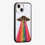 Give Me Space. iPhone case speaks for itself. Featuring a rainbow ufo design with gold foiling and a black bumper.