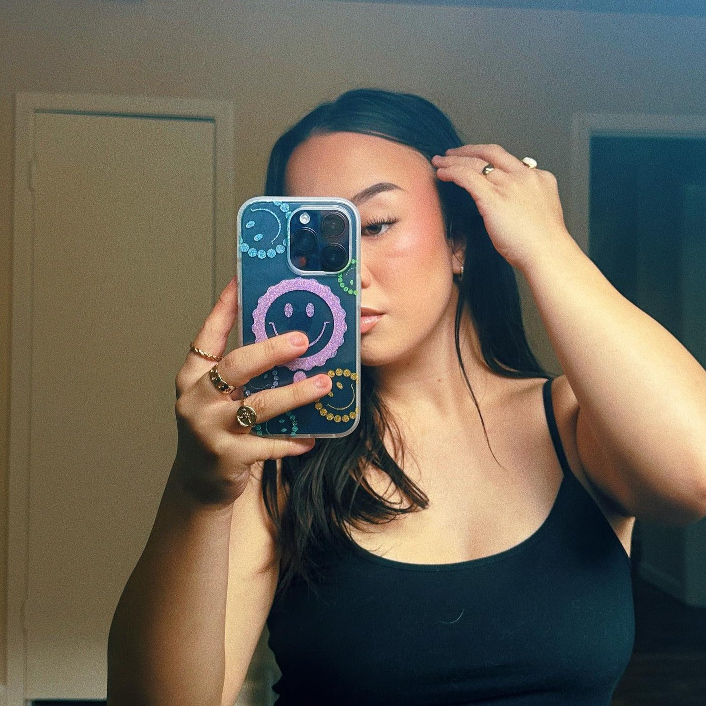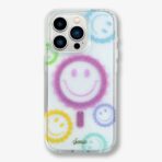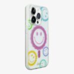This iPhone case is clear. incorporating the color of your phone into the backdrop of pastel smiley faces. With an added element of intense sparkle. this accessory is guaranteed to catch the light.