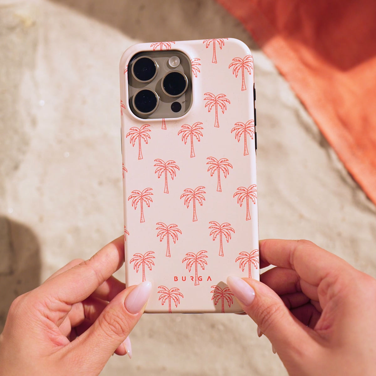 Retreat into the serene whispers of our Happy Hour design. Gentle pink palms sway on a soothing blush background. creating images of a tranquil paradise. This OnePlus 8 phone case is perfect for dreamers and nature lovers who seek a daily escape into tranquility.