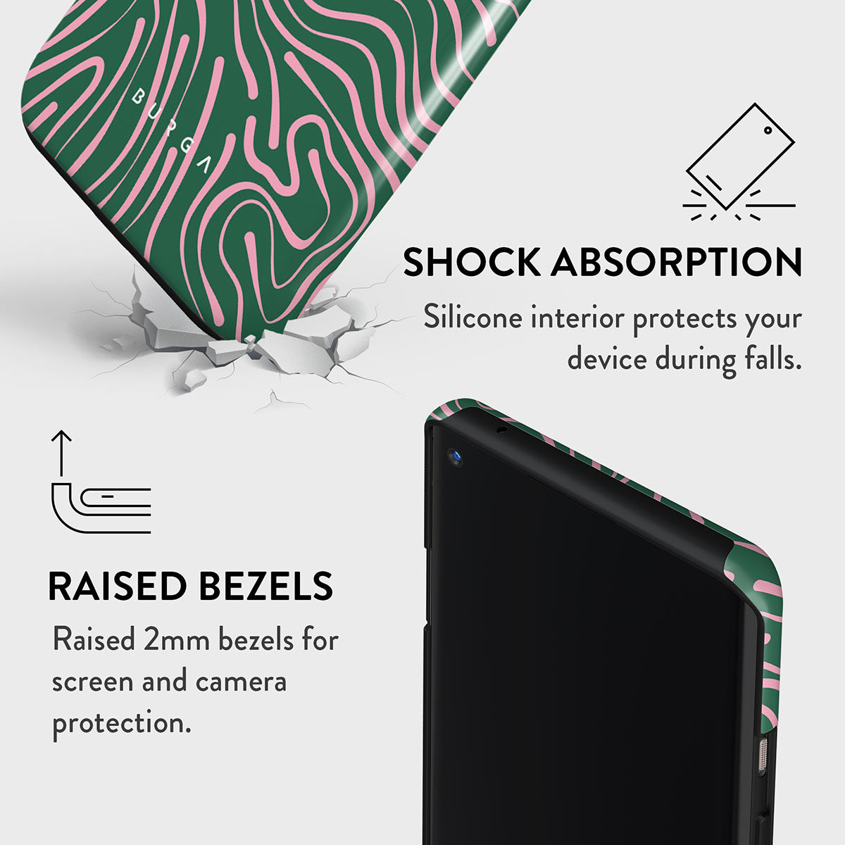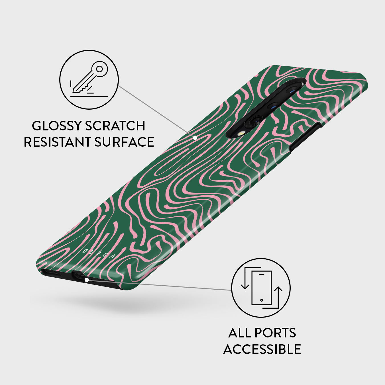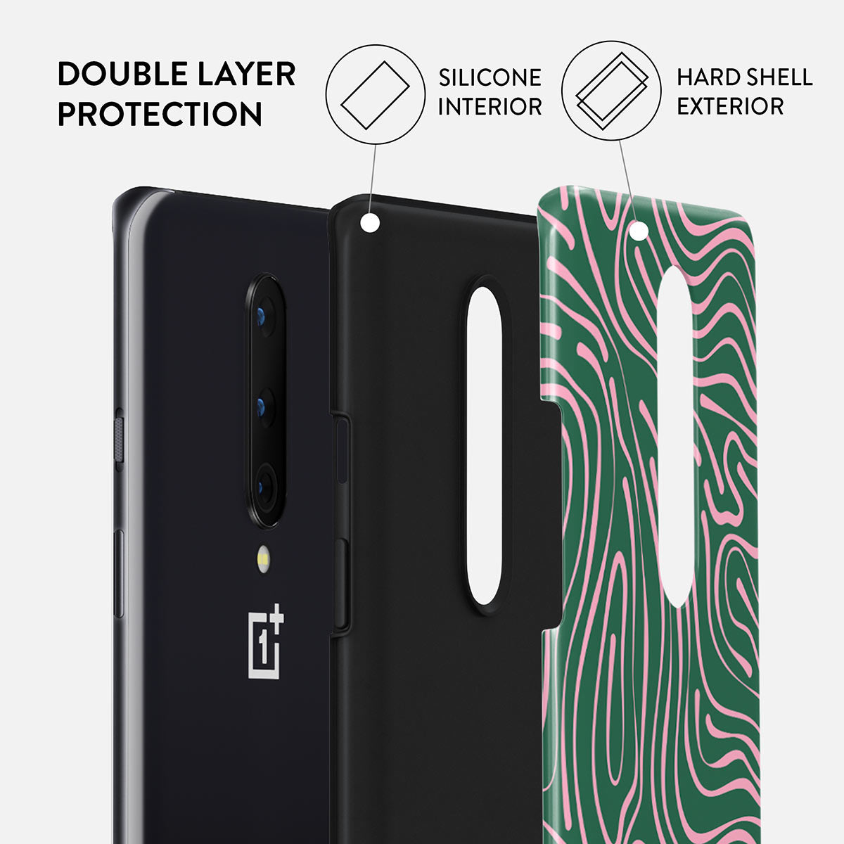 Fresh and mesmerizing. our Hawaiian Breeze OnePlus 8 phone case design combines a pastel pink wavy pattern with a crisp green background creating a refreshing look. The abstract pattern will indeed become a star in your accessorizing game. while the phone case will keep your device protected at all times!