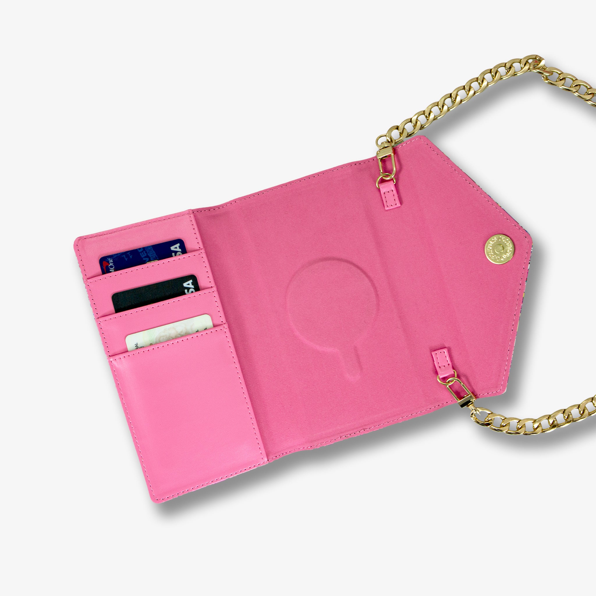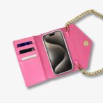 - Includes 1 crossbody chain. 1 detachable wallet case. and 1 iPhone case