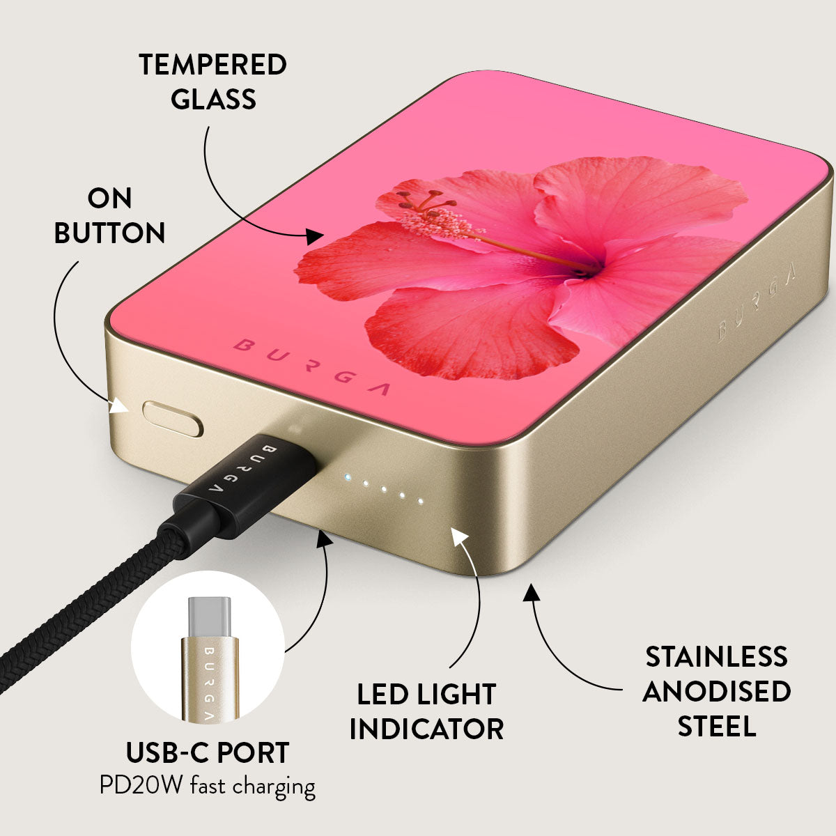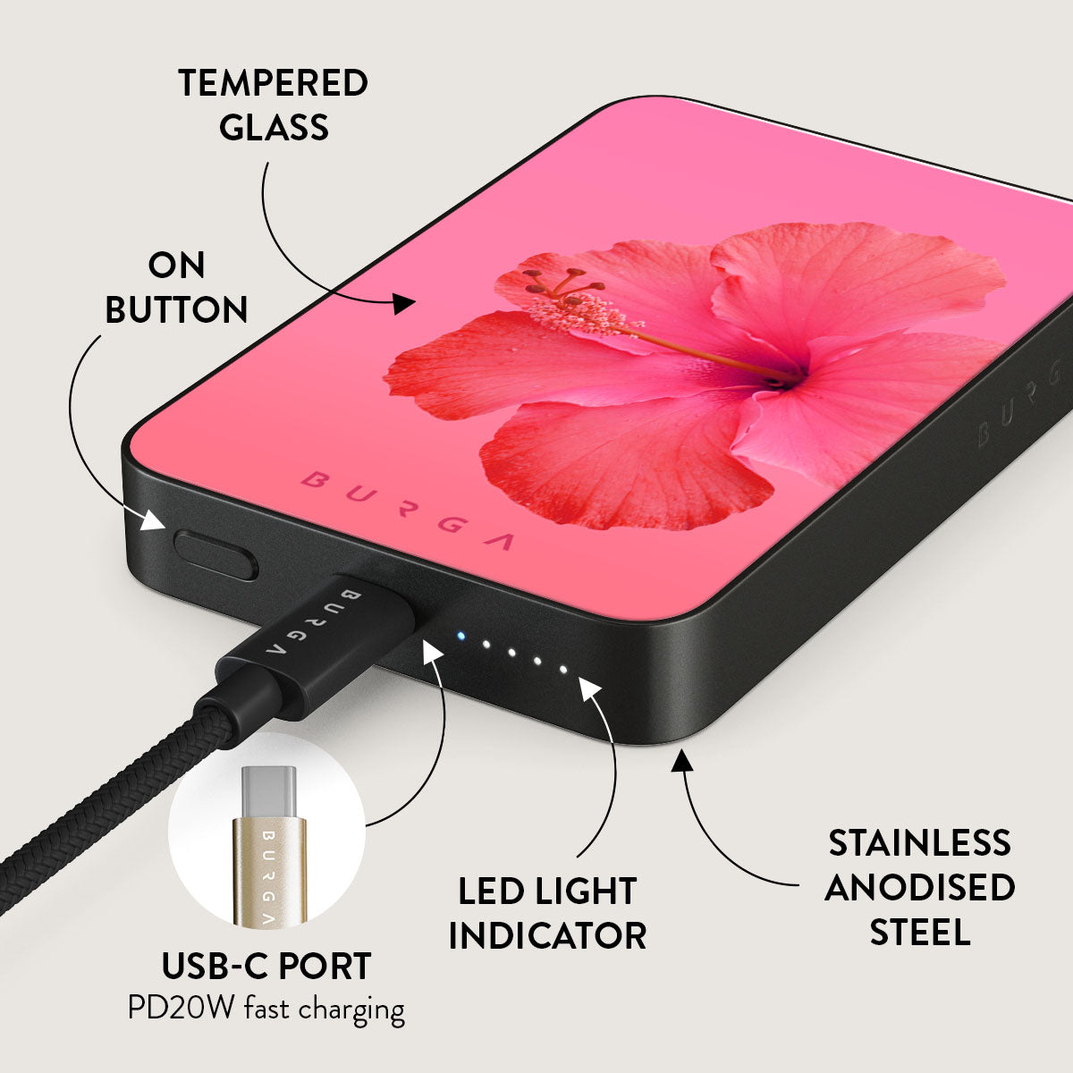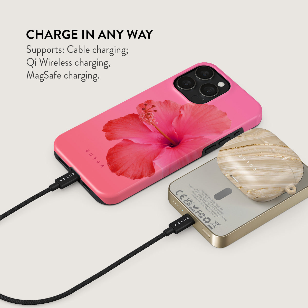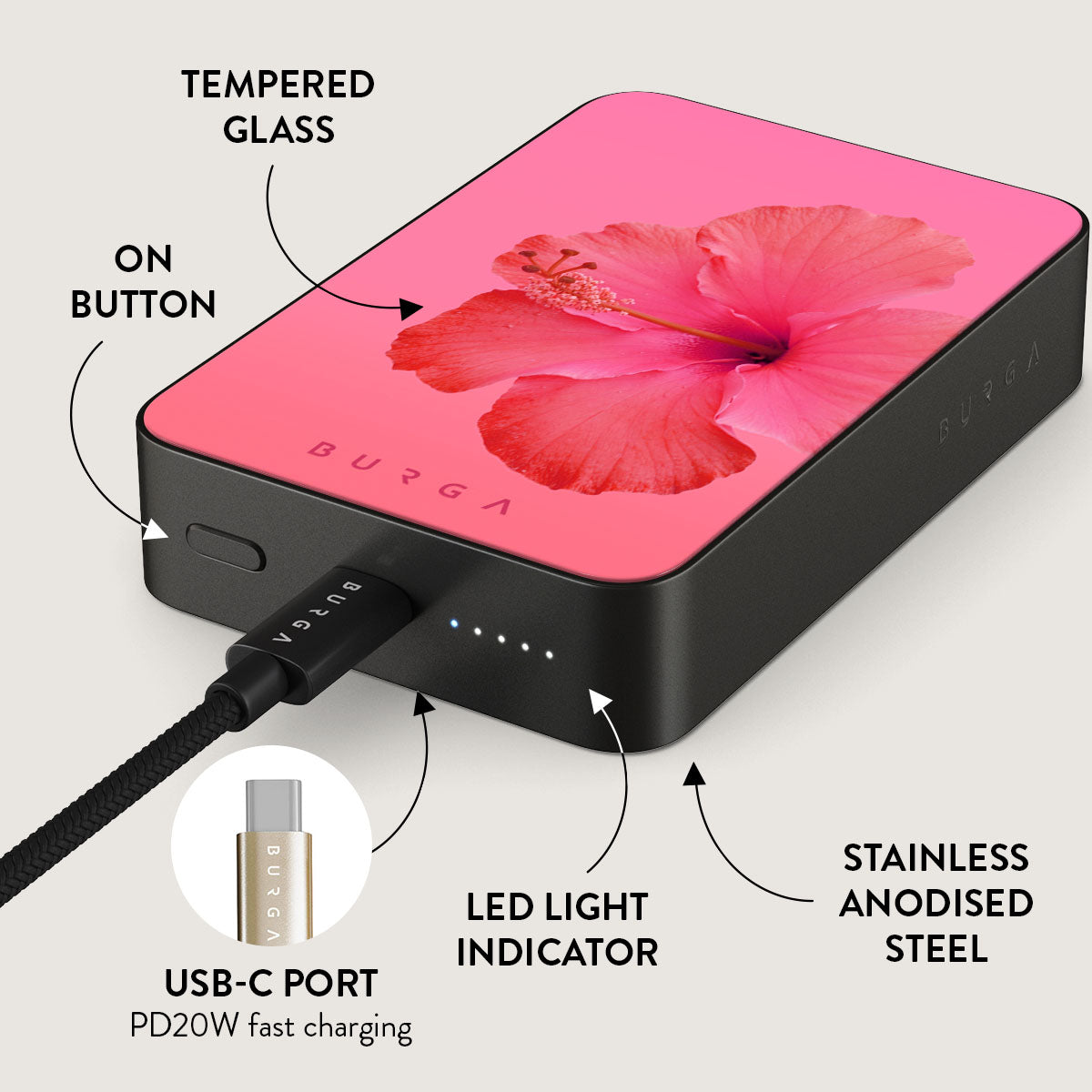 Small but mighty. Stylish but practical. Meet the new and improved BURGA Magnetic Power Bank – your pocket-sized savior with a 5.000 / 10.000 / 15.000 mAh punch. It’s where sleek design meets BURGA’s signature style. made to keep you charged and turning heads wherever you go.