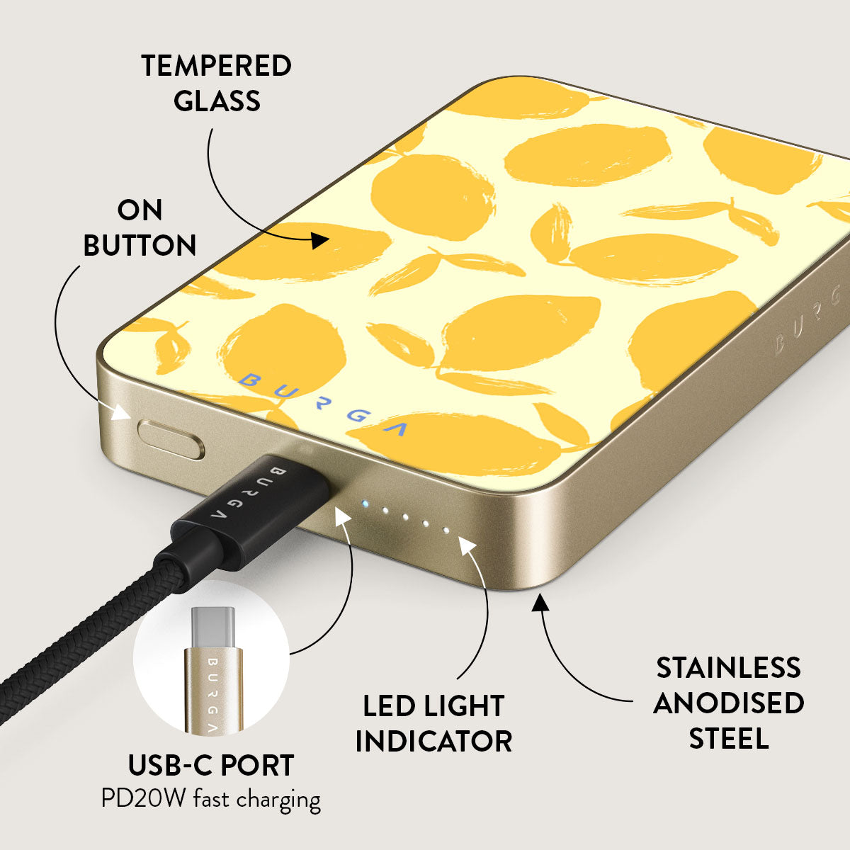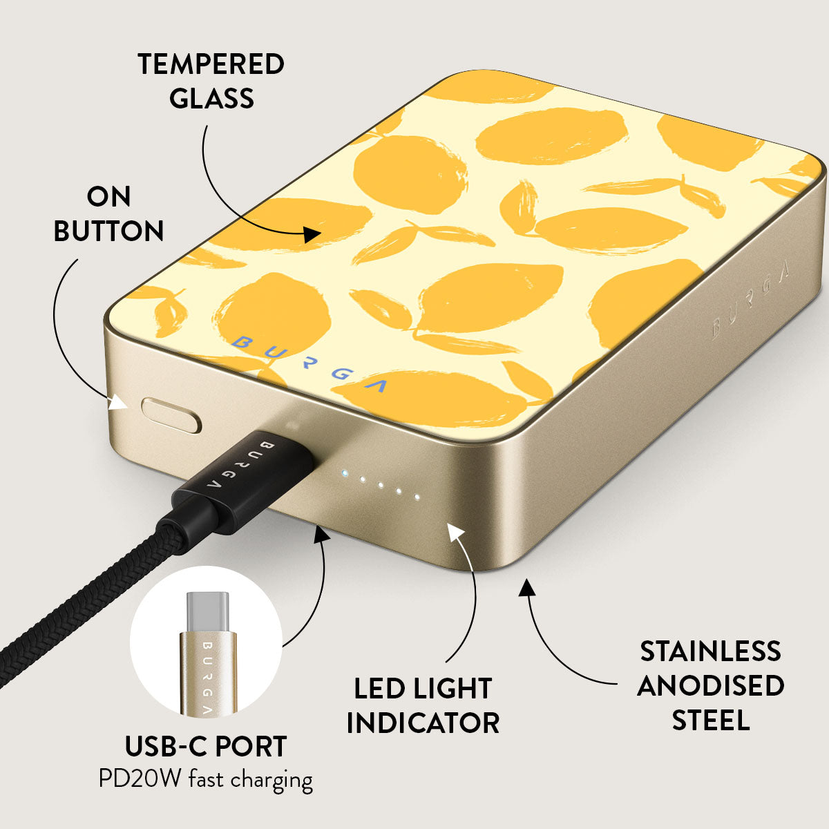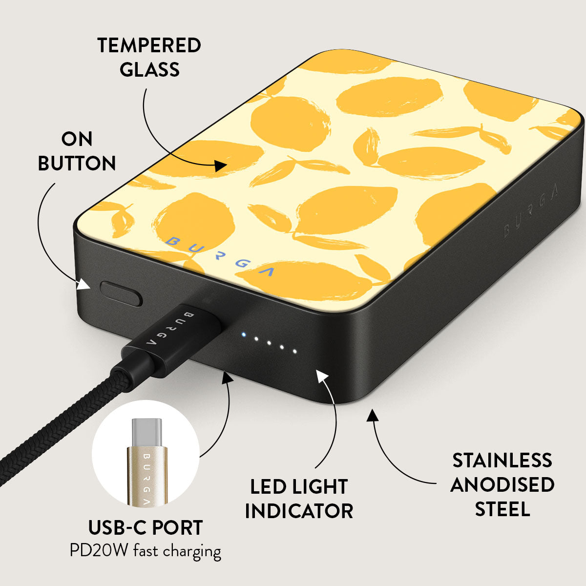 Small but mighty. Stylish but practical. Meet the new and improved BURGA Magnetic Power Bank – your pocket-sized savior with a 5.000 / 10.000 / 15.000 mAh punch. It’s where sleek design meets BURGA’s signature style. made to keep you charged and turning heads wherever you go.