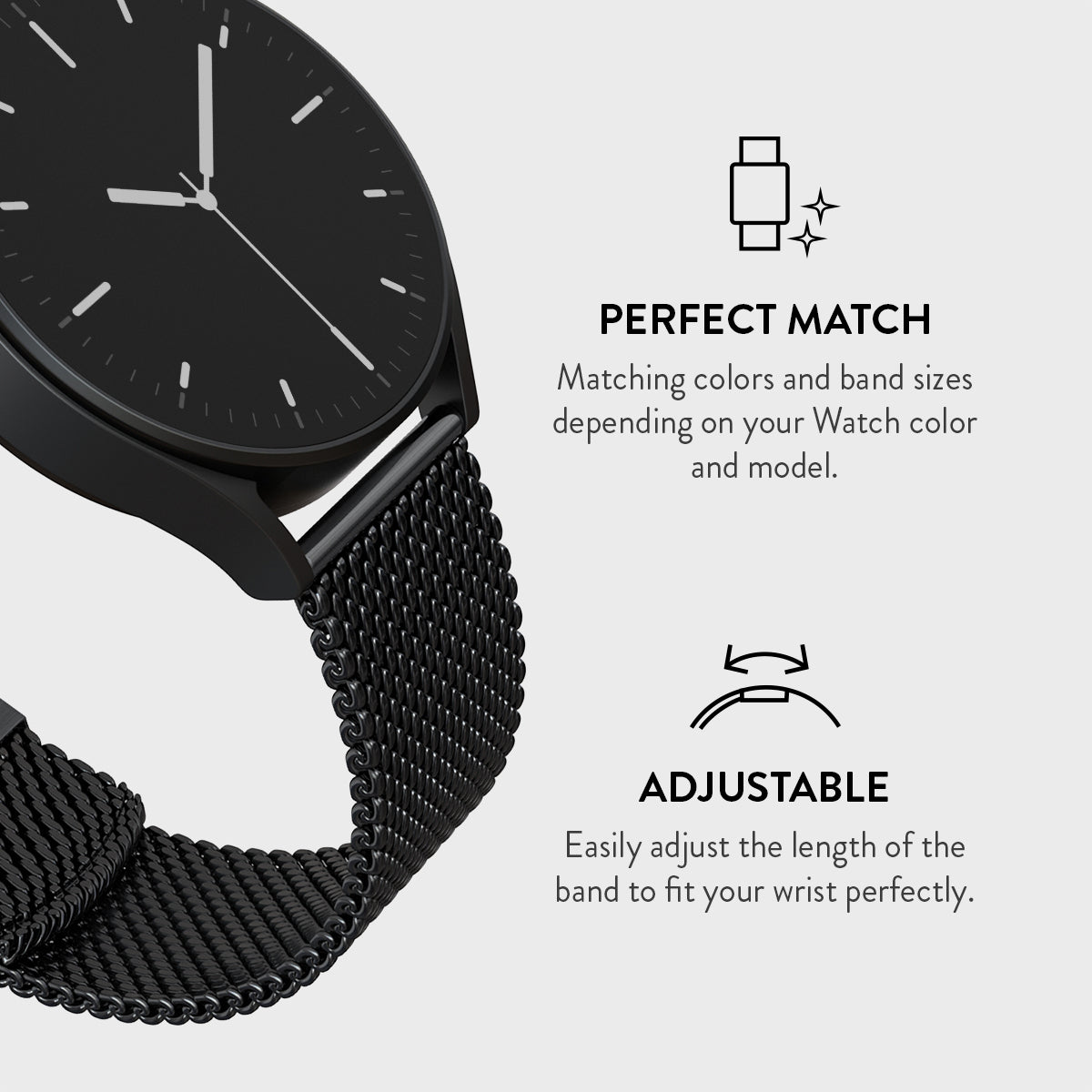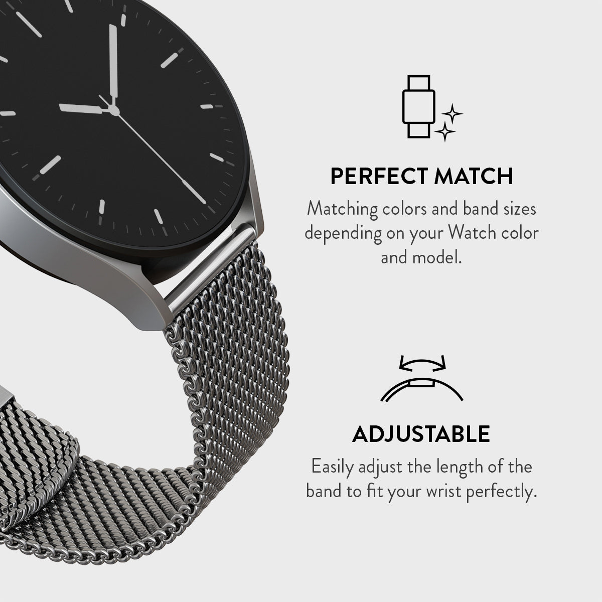 Upgrade your watch — smart or classic — into a luxurious accessory with our premium tapered mesh band.