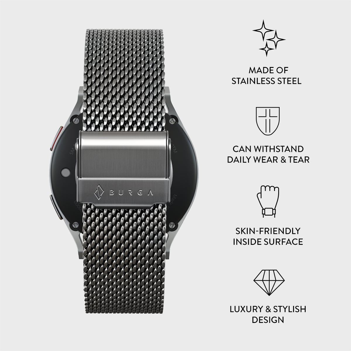 Get ready to turn heads with a tapered mesh band that’s not just good looks. but a game-changer in comfort and style.