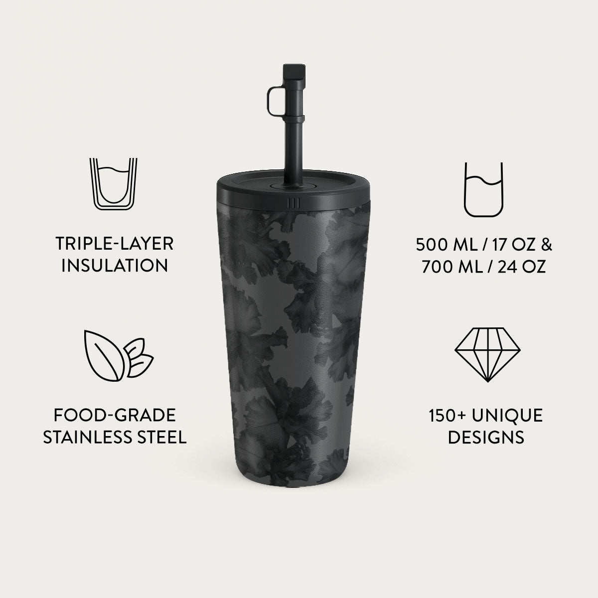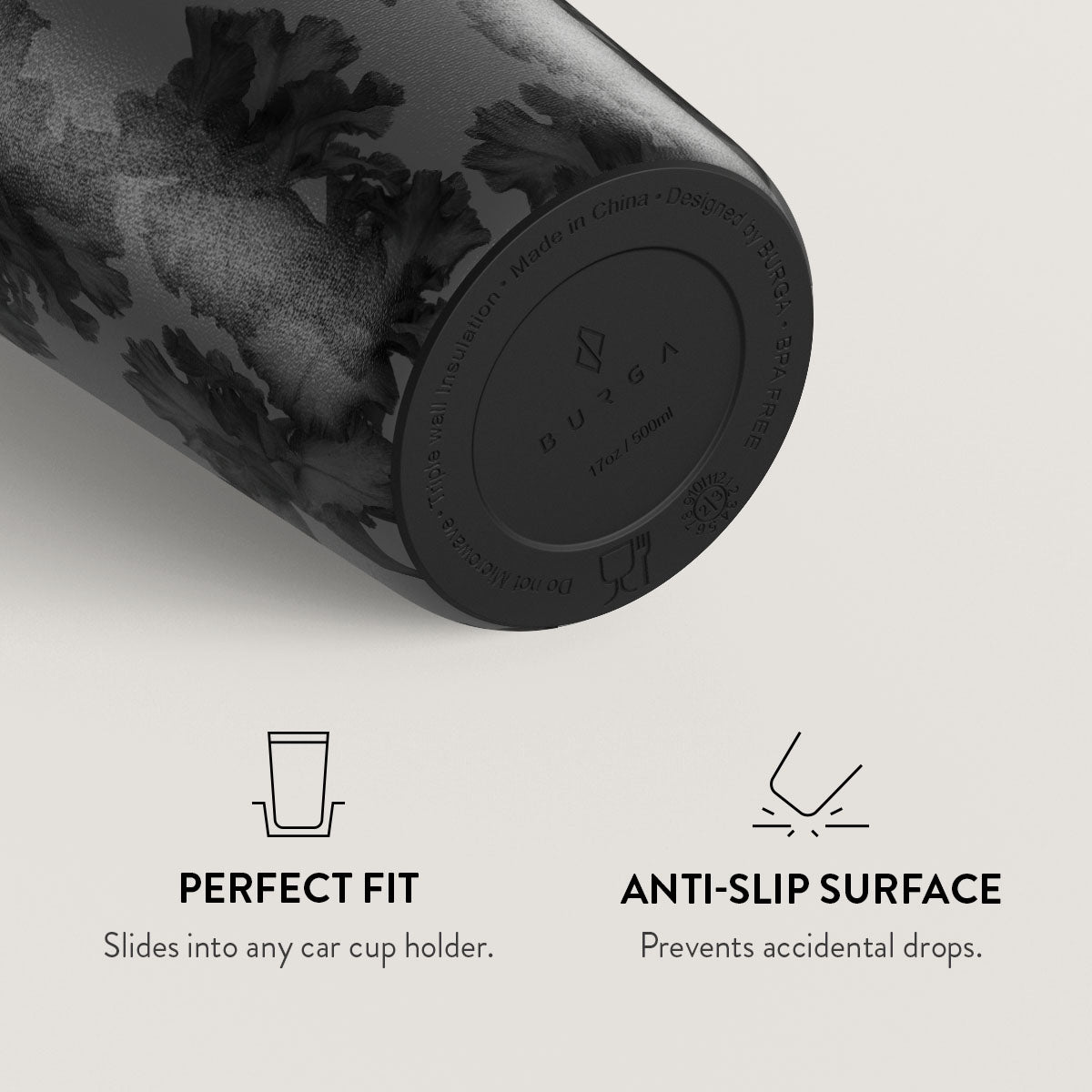Choose from over 150 unique BURGA designs. each paired with one of six vibrant flap or straw lid colors. Our team matches the lid to the design for a seamless and stylish look.