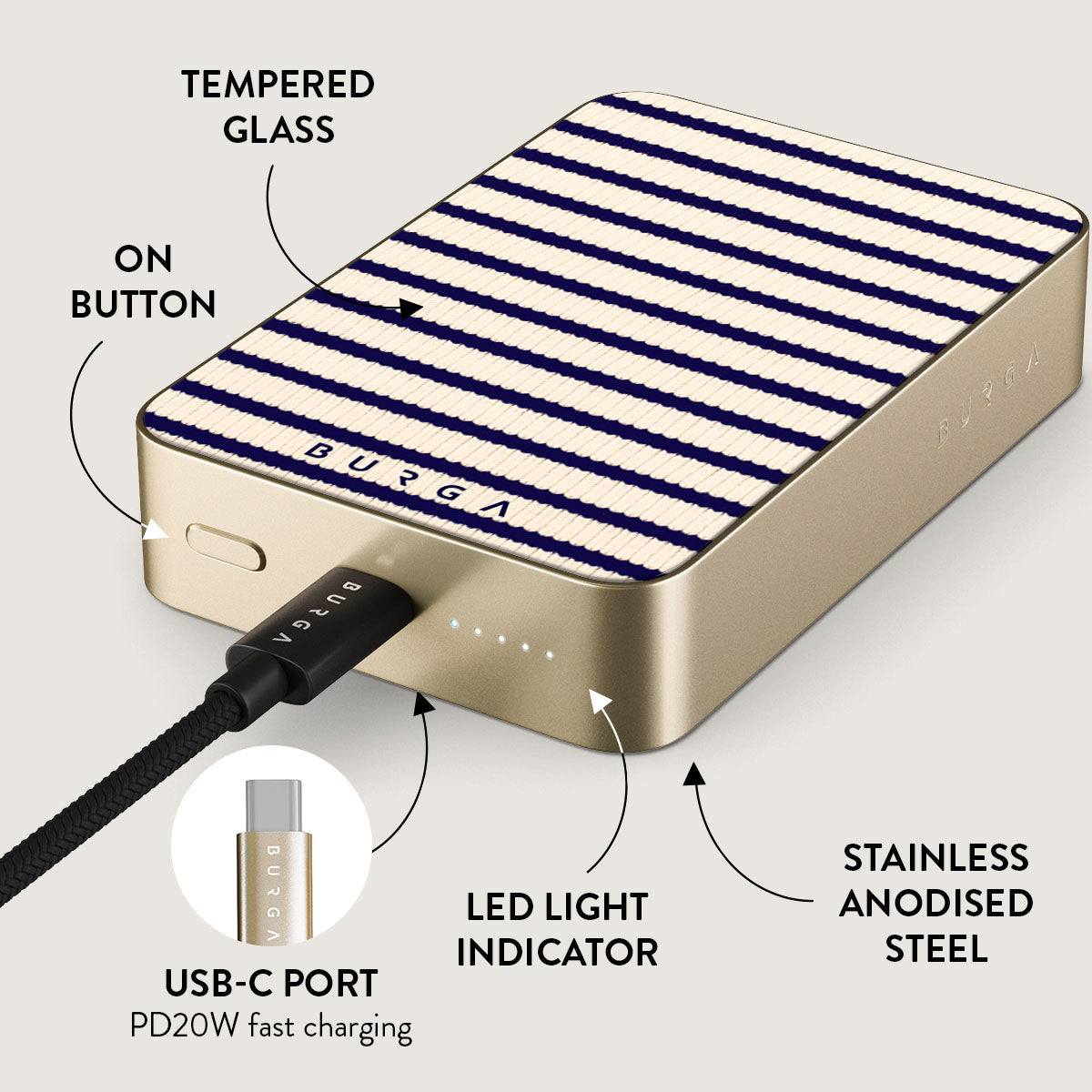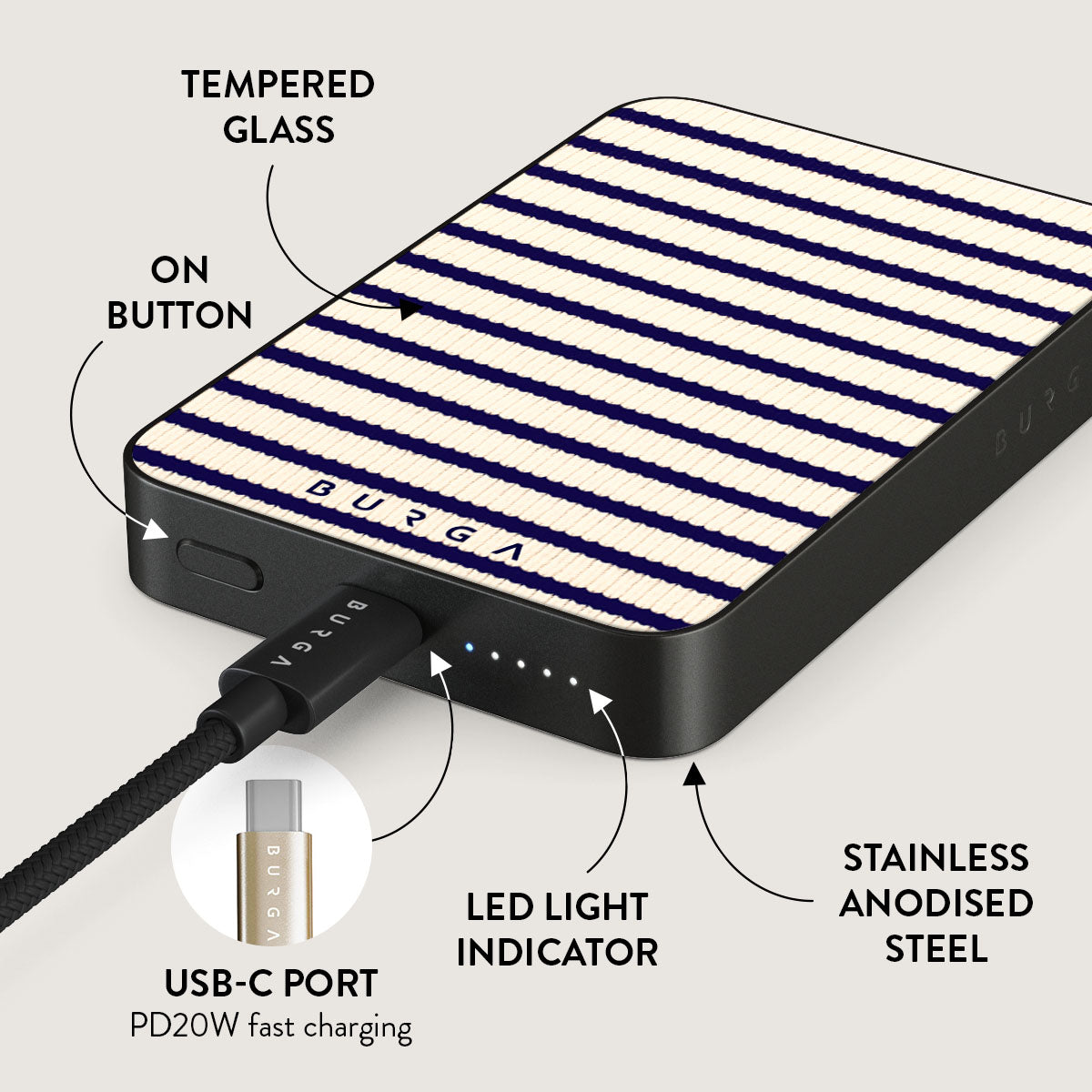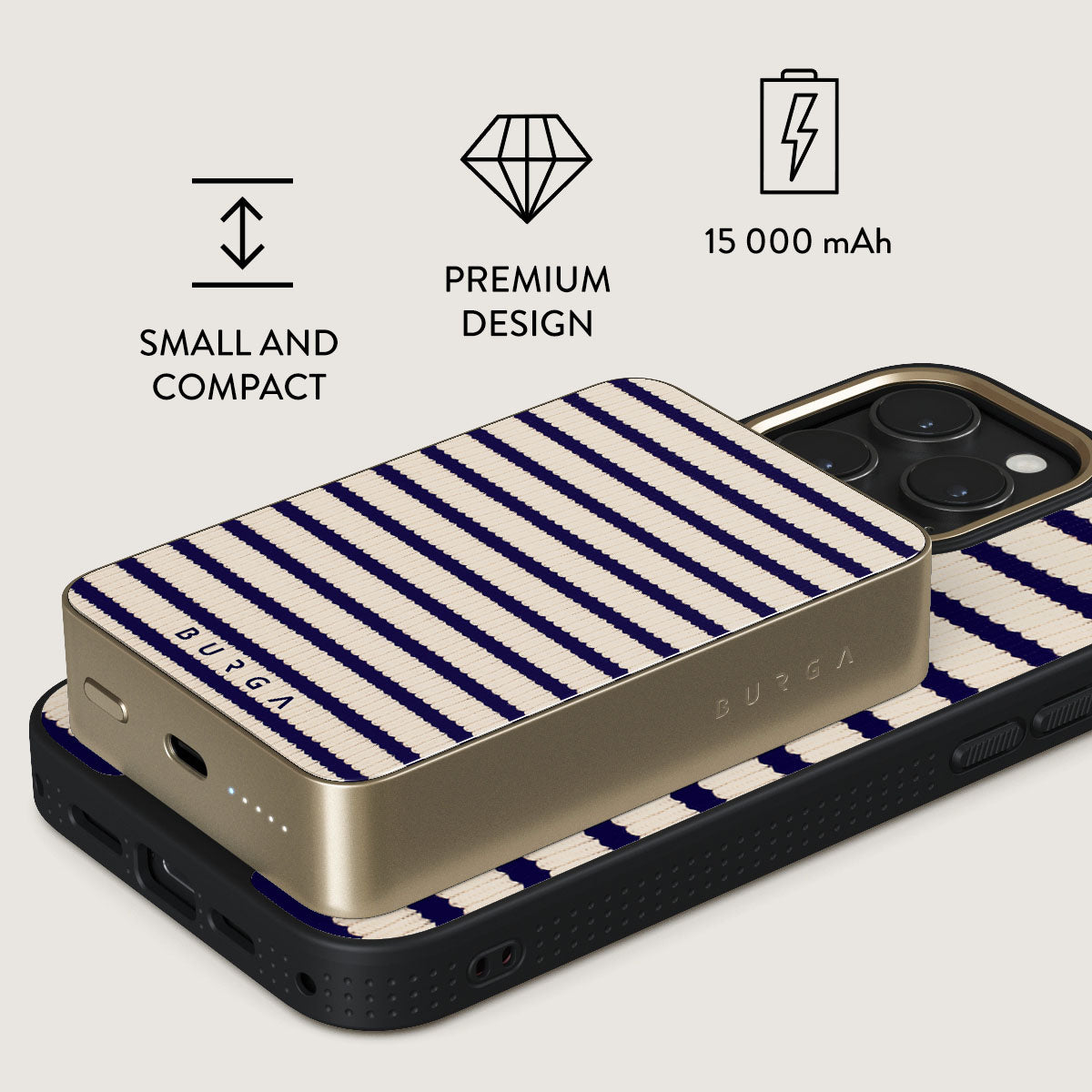 Small but mighty. Stylish but practical. Meet the new and improved BURGA Magnetic Power Bank – your pocket-sized savior with a 5.000 / 10.000 / 15.000 mAh punch. It’s where sleek design meets BURGA’s signature style. made to keep you charged and turning heads wherever you go.