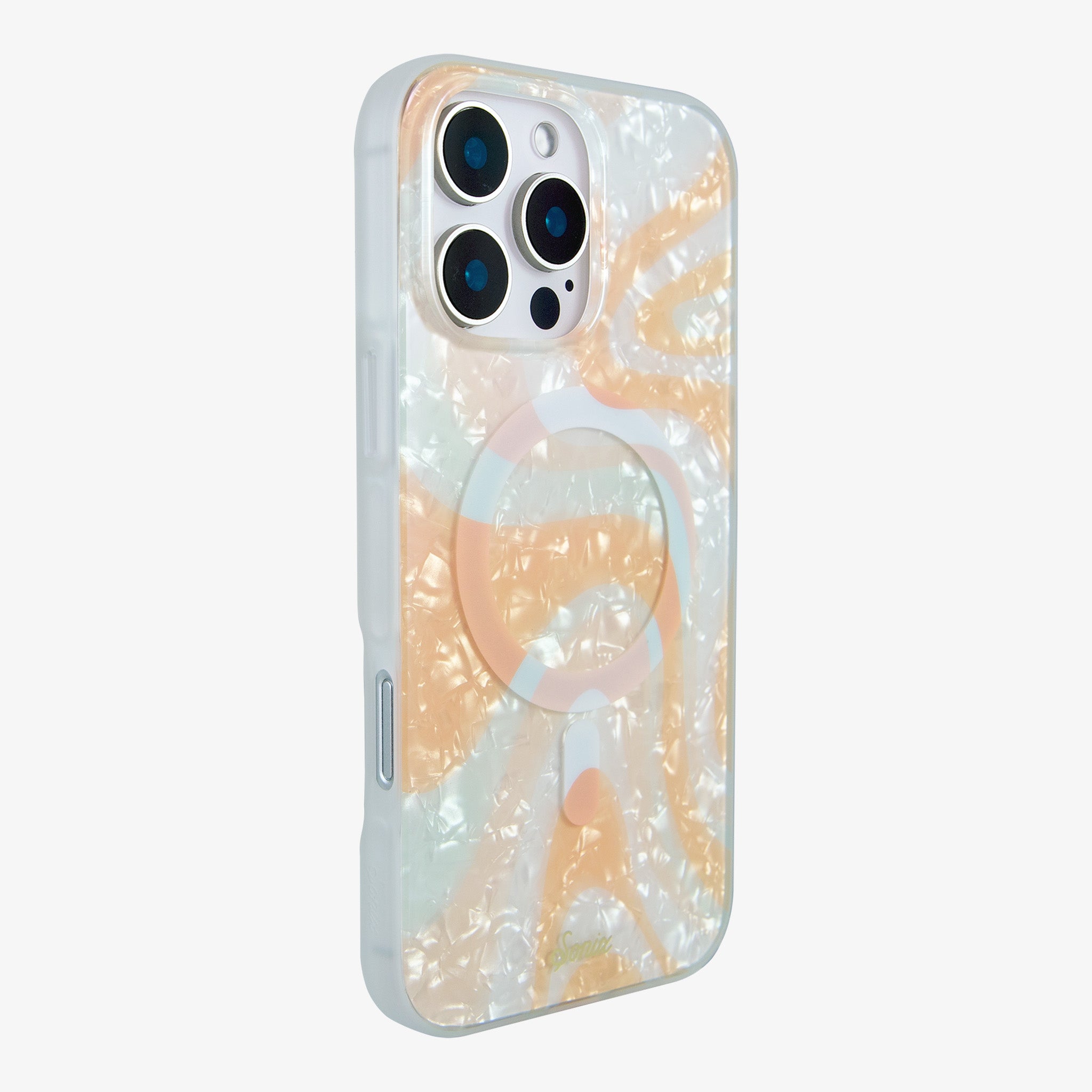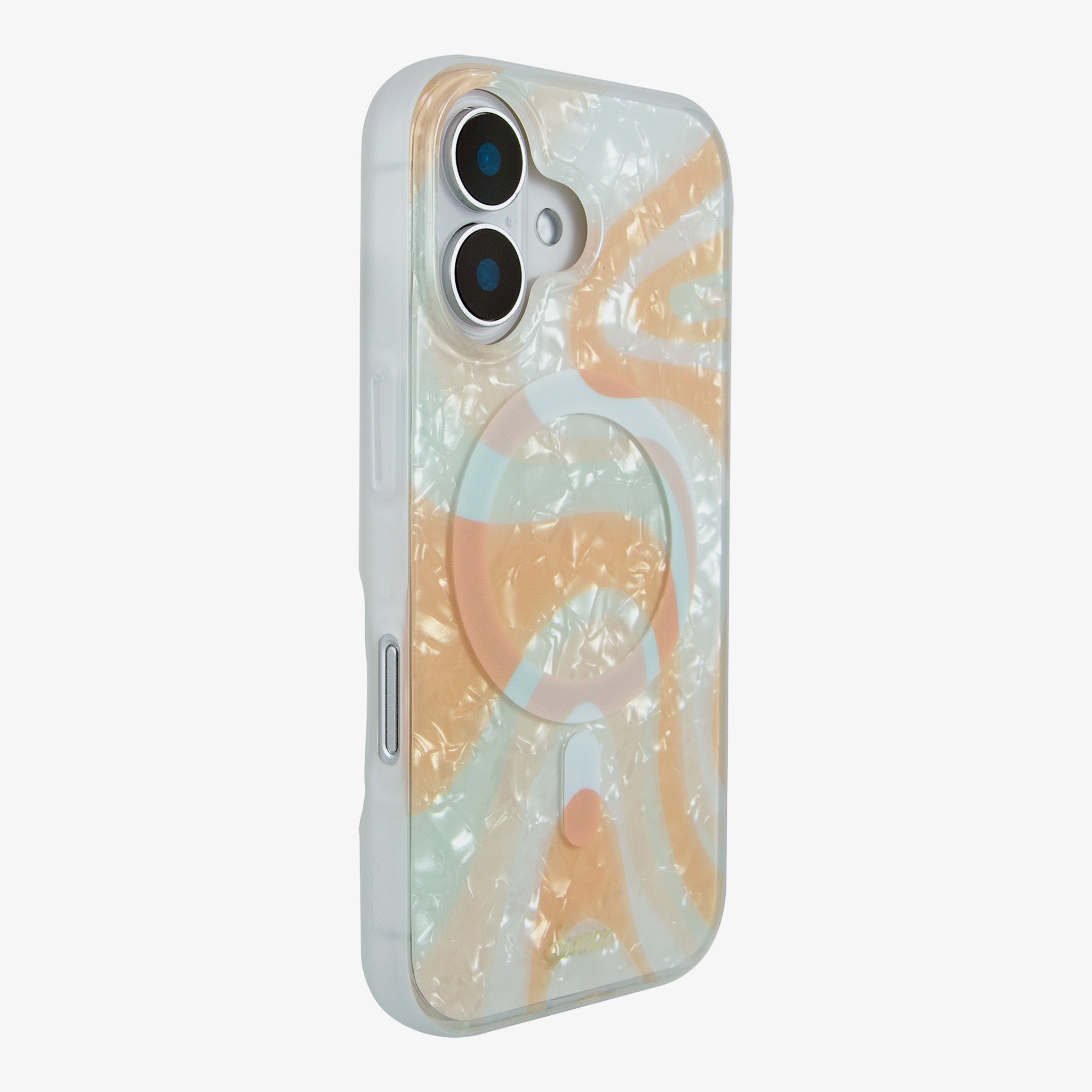 Don’t know about you. but we are obsessed with Pantone’s color of the year for 2024. Peach Fuzz! Not quite pink. and not quite orange. this velvety peach shade has been in our dreams. but the details are getting kind of fuzzy. That’s where this psychedelic. dreamy new print of ours comes in. The Peach Fuzz Tort MagSafe® compatible iPhone case is a sweet and swirly meditation of peachy. turquoise. and creamy beige tones that definitely vibes. It may feel like your mind is playing mischief on you. but trust us; just go with it. The psychedelic swirls of this print layered over a pearly tort background will transport you to a happy place.
