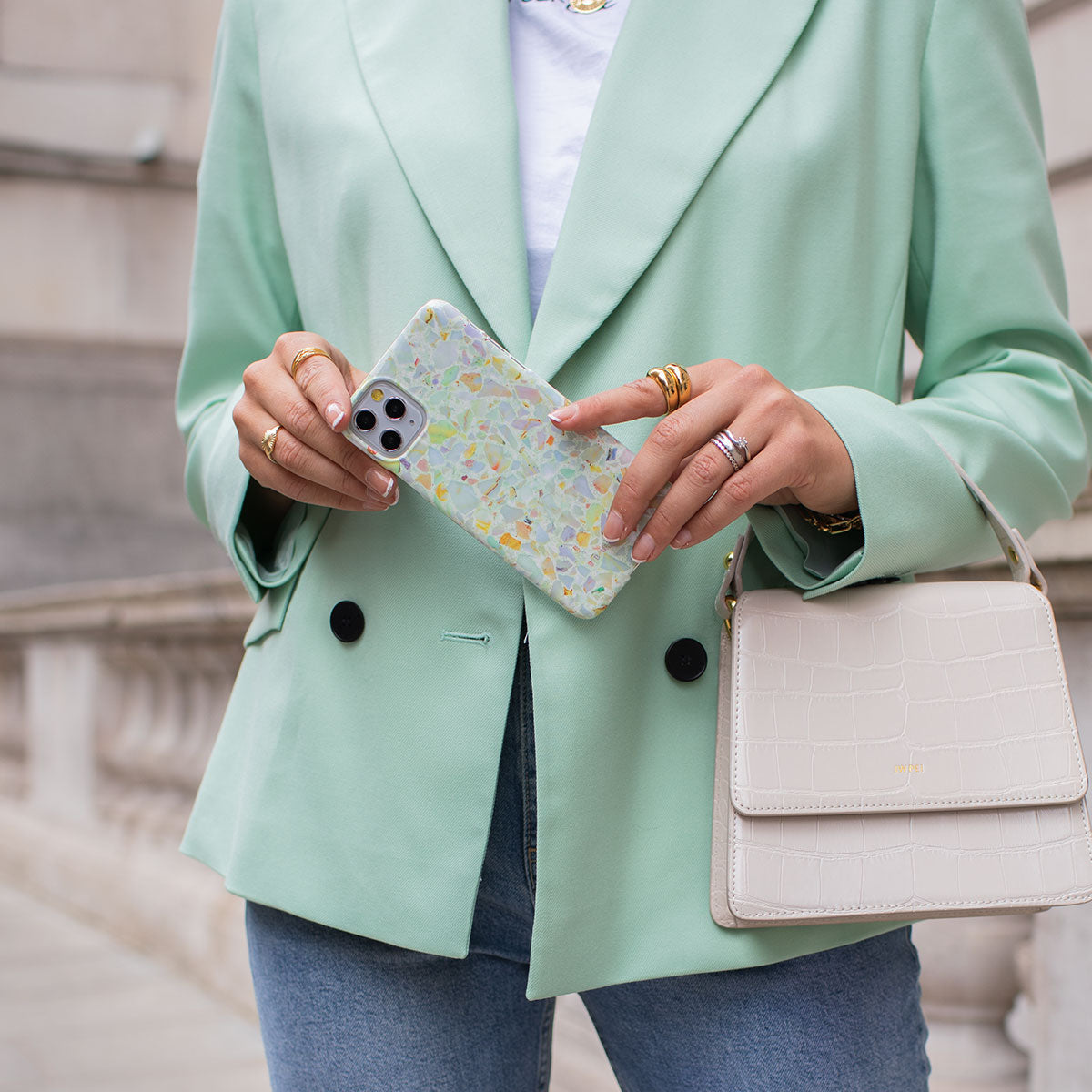 Sun is shining bright. creating rainbows on the path as the light and warm rain just washed the tiles. Walk around barefoot and feel the magic in your steps. Take this summery feeling encased in a cute OnePlus 8 phone case that is as protective as mesmerizing the rainbow can be.
