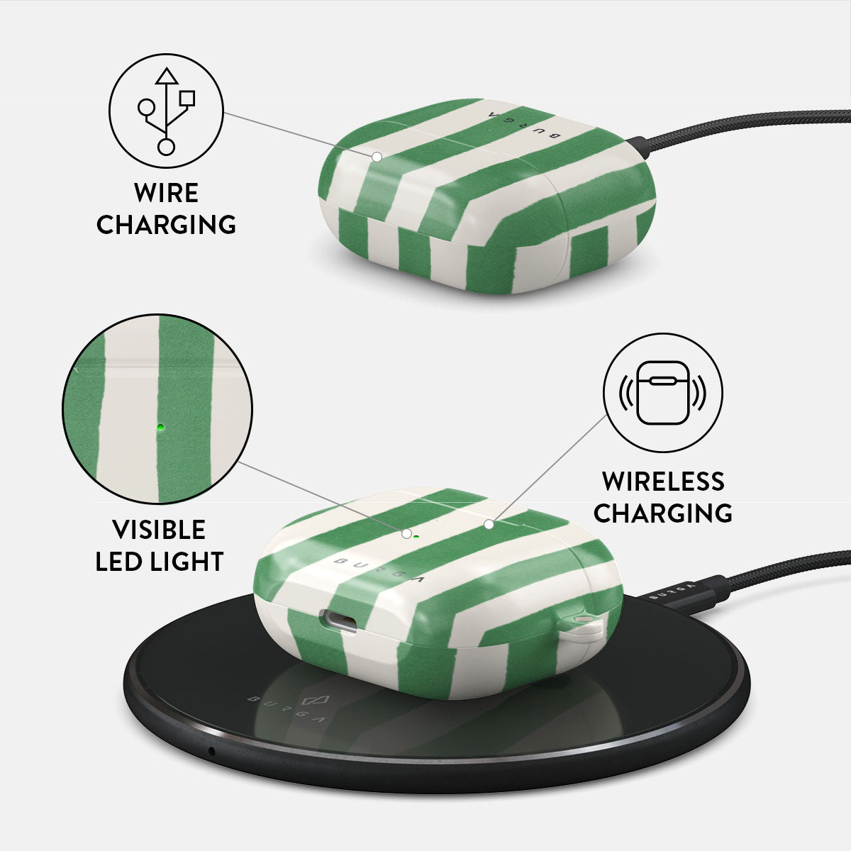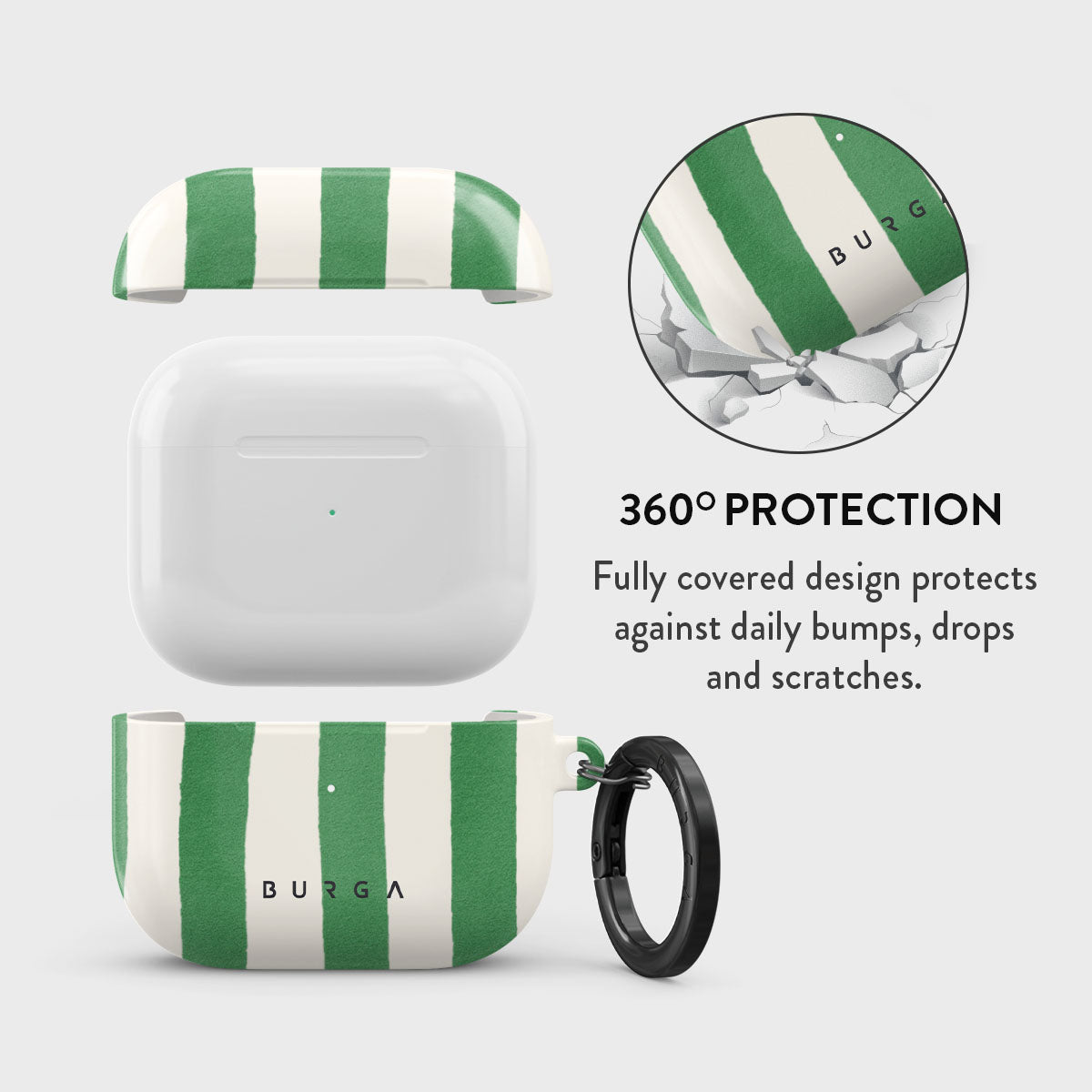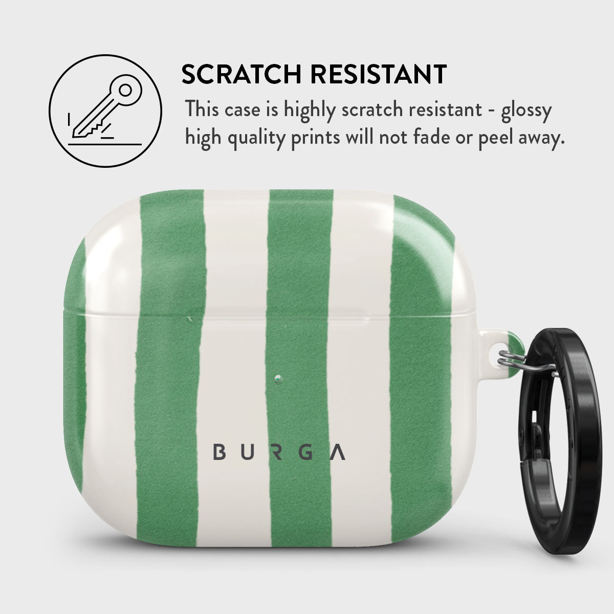 It’s like you’re riding a wave on a flamingo float. heading straight for a beach bar. This Apple AirPods 3 case cover design is sardines. stripes. and sunshine in the same breath—chaotic. cool. and ready to drop that vacation vibe. Can you smell the sea breeze yet?This design features: Sardines. green stripes. ocean motifs