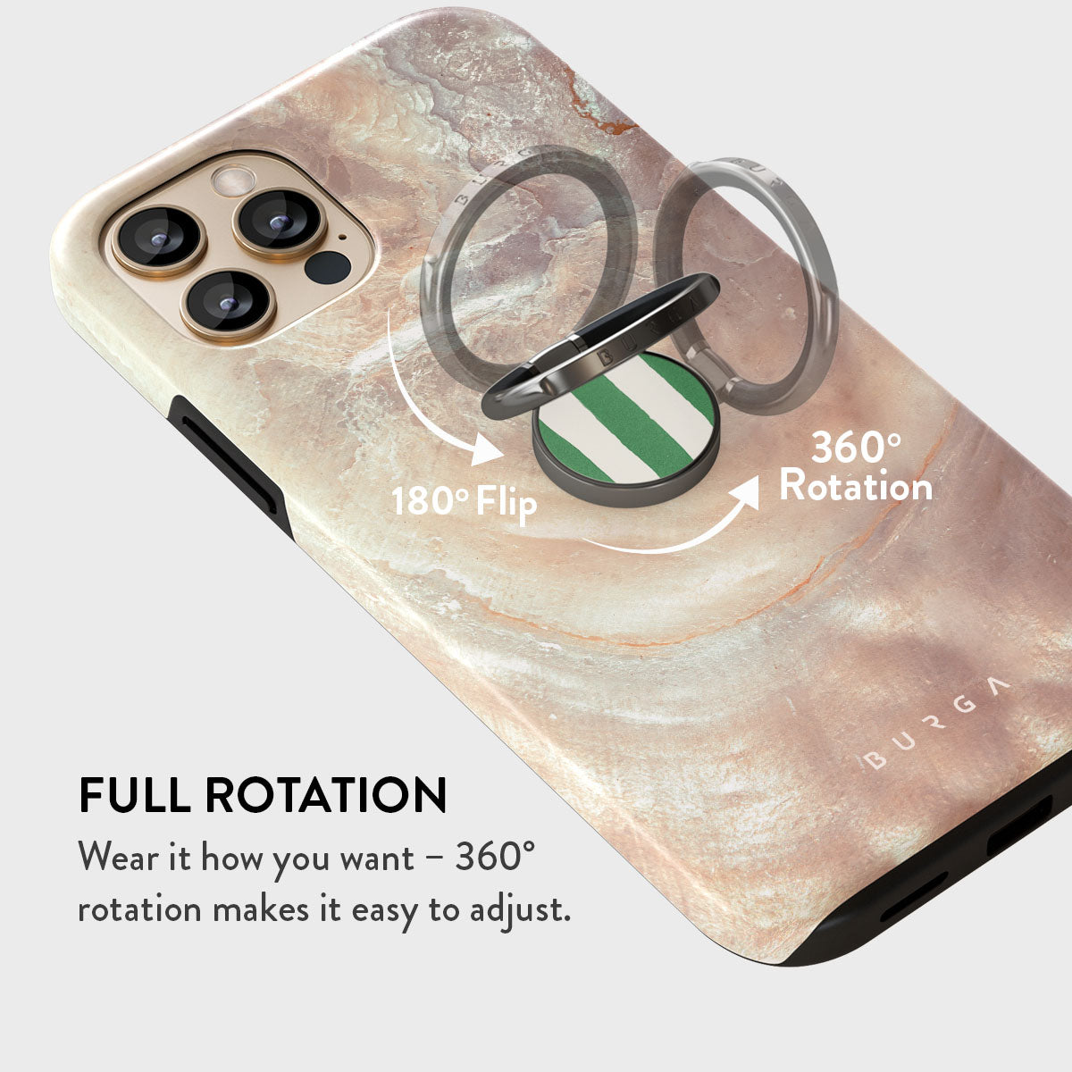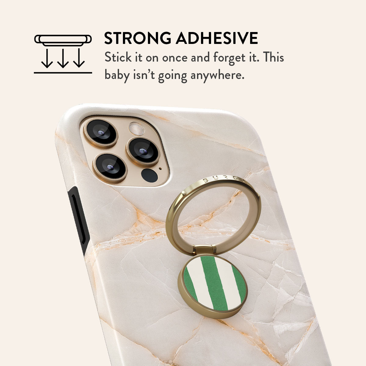 Meet the BURGA Phone Ring Holder: the tiny hero your phone didn’t know it needed. Pop it on the back of your phone. loop a finger through. and voilà! — your tech stays in place. effortlessly. Now that’s what we call hands-on security.
