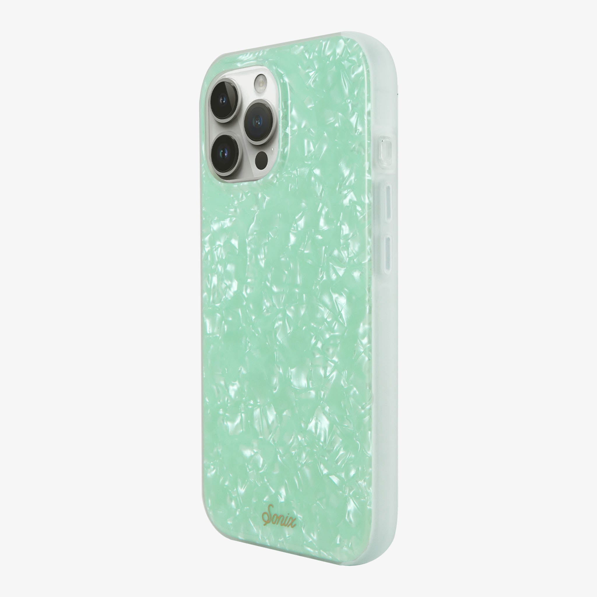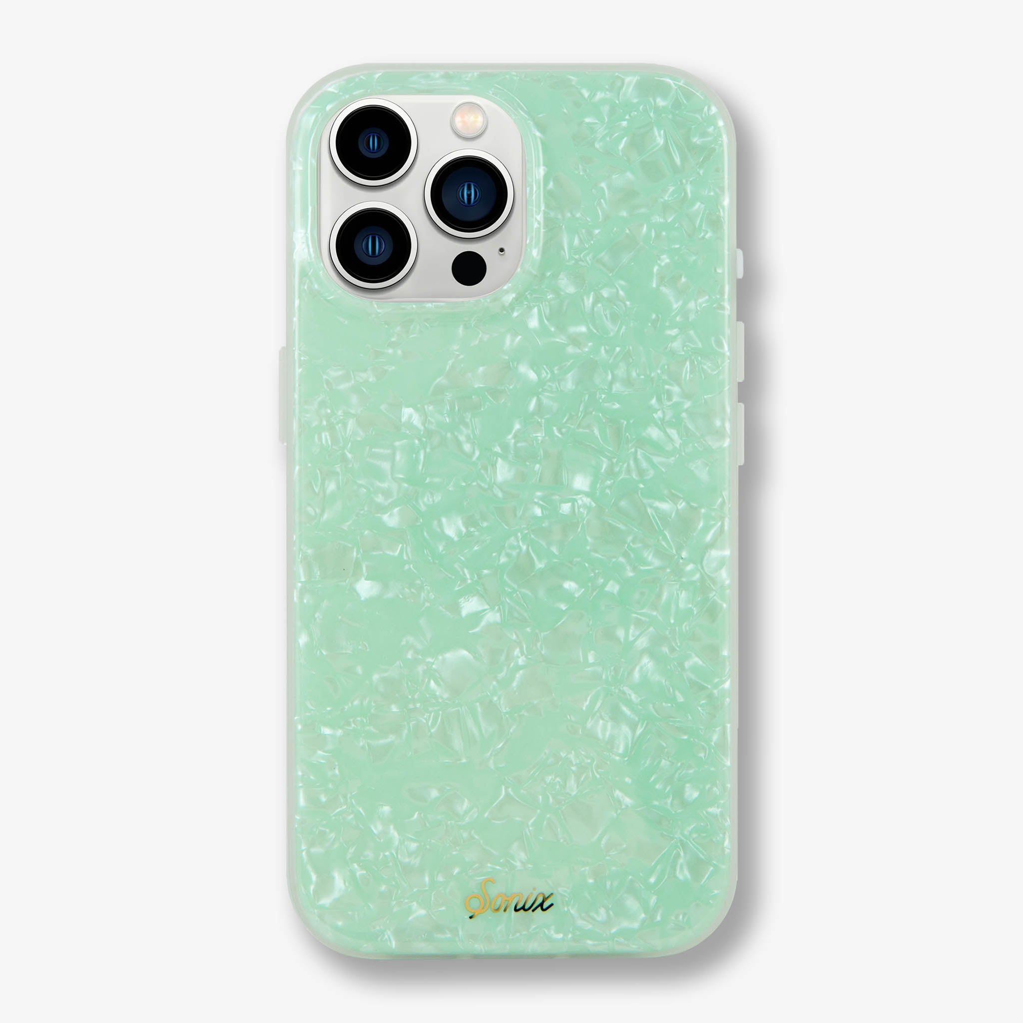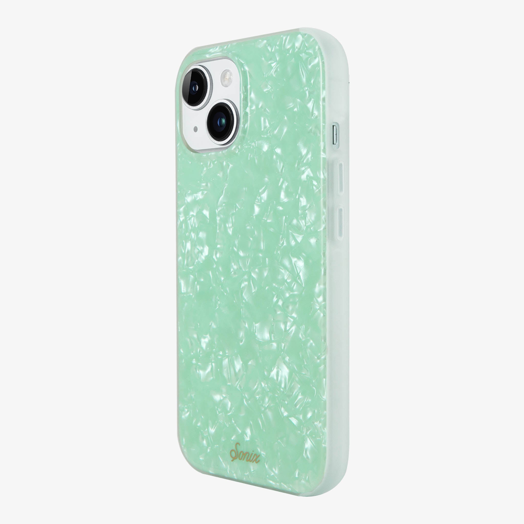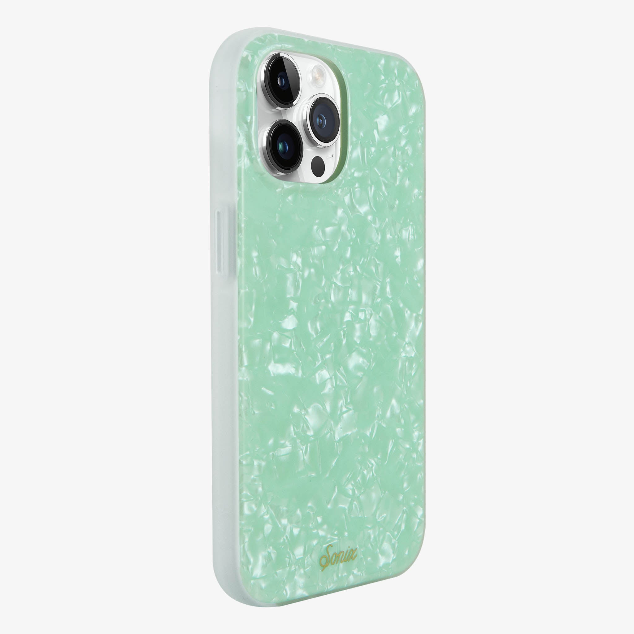 Are you breathing in the fresh. ocean air or just gazing at our Seafoam Tort MagSafe® Compatible iPhone case and mentally transporting yourself to the beach? With the perfect pale hue of a crystal shoreline. this phone case brings the calming effects of an island vacation with you everywhere you go. The shimmering tort adds to the majestic effect of the gentle waves you will definitely need before responding to that work email.