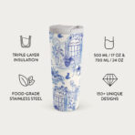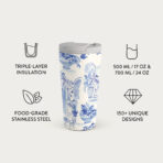 • 500 ml (17 oz.) Travel Mug: Keeps drinks hot for 6 hours. cold for 24 hours.