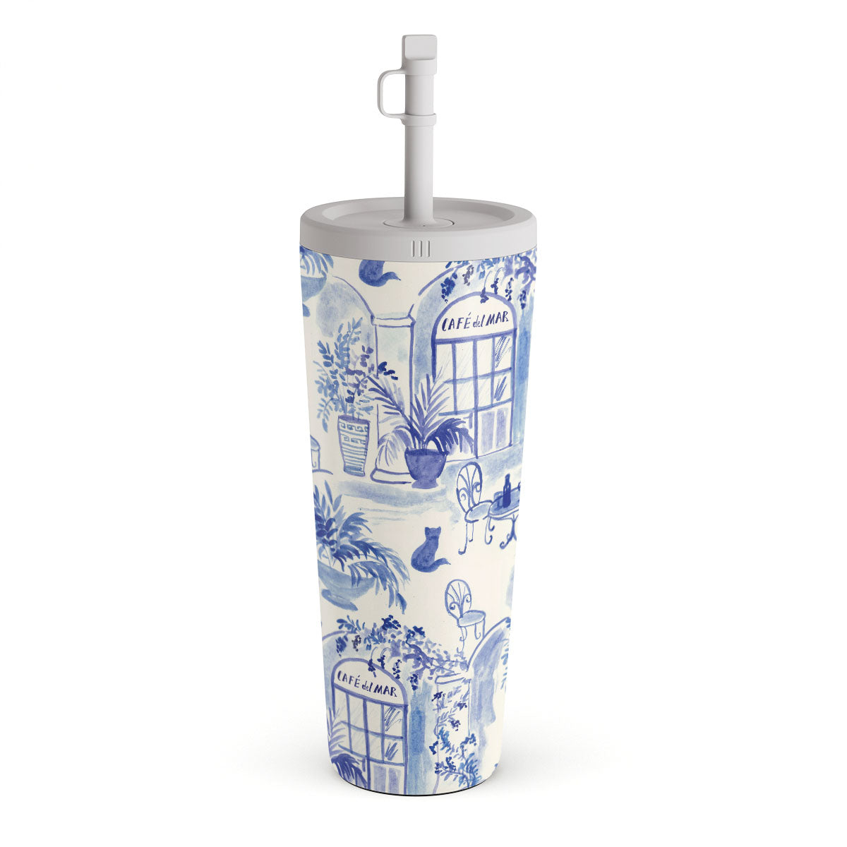 This design features: soft blues. coastal patterns. café elements. minimalist style. retro pattern. Mediterranean pattern.