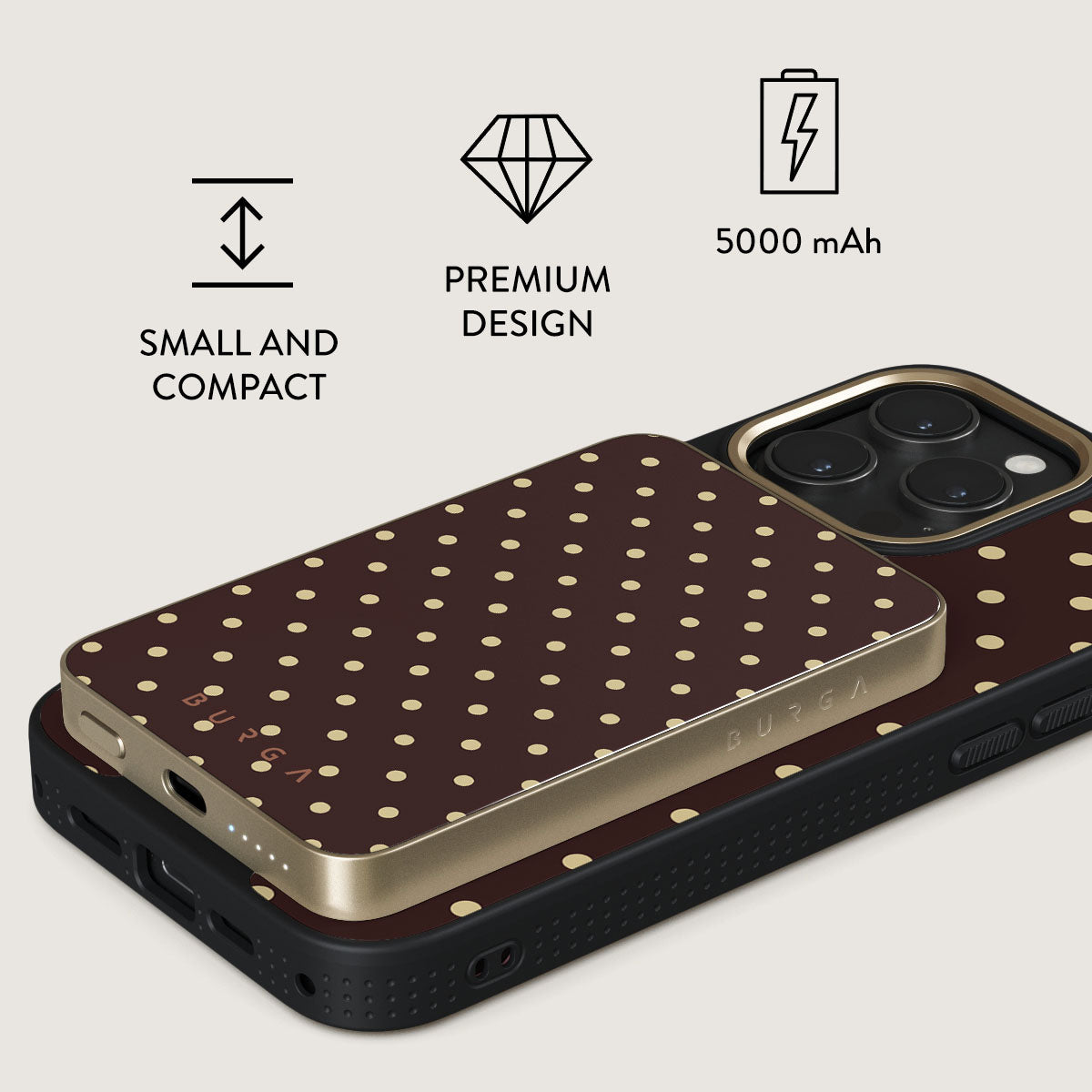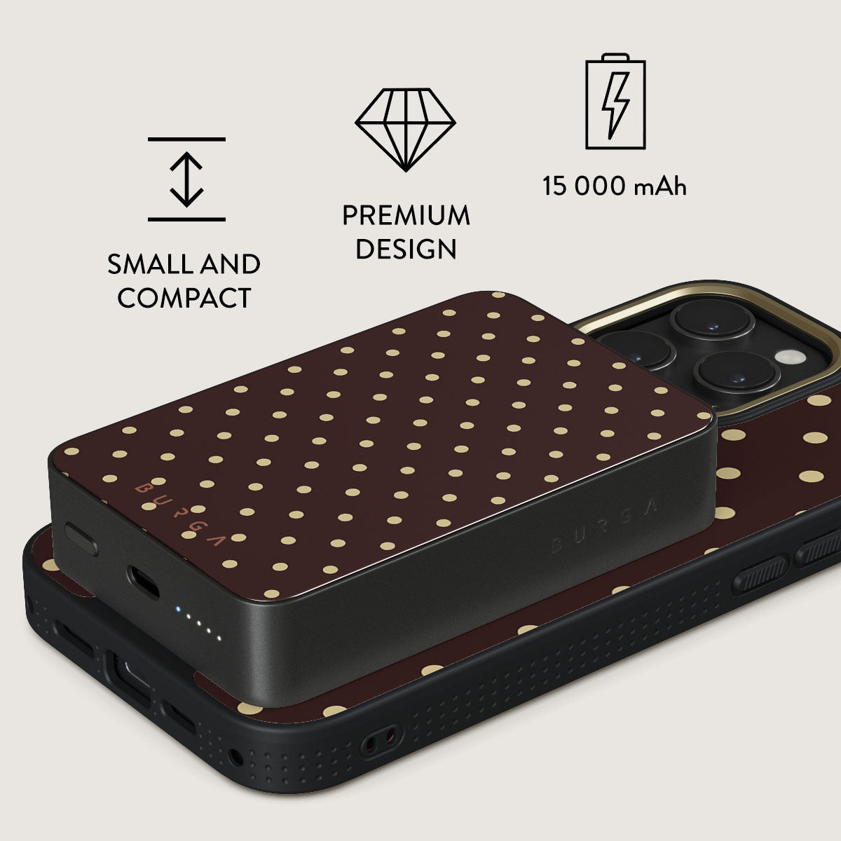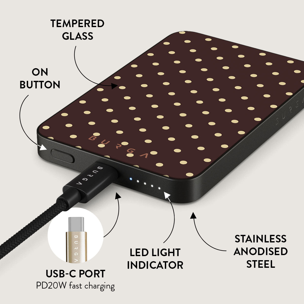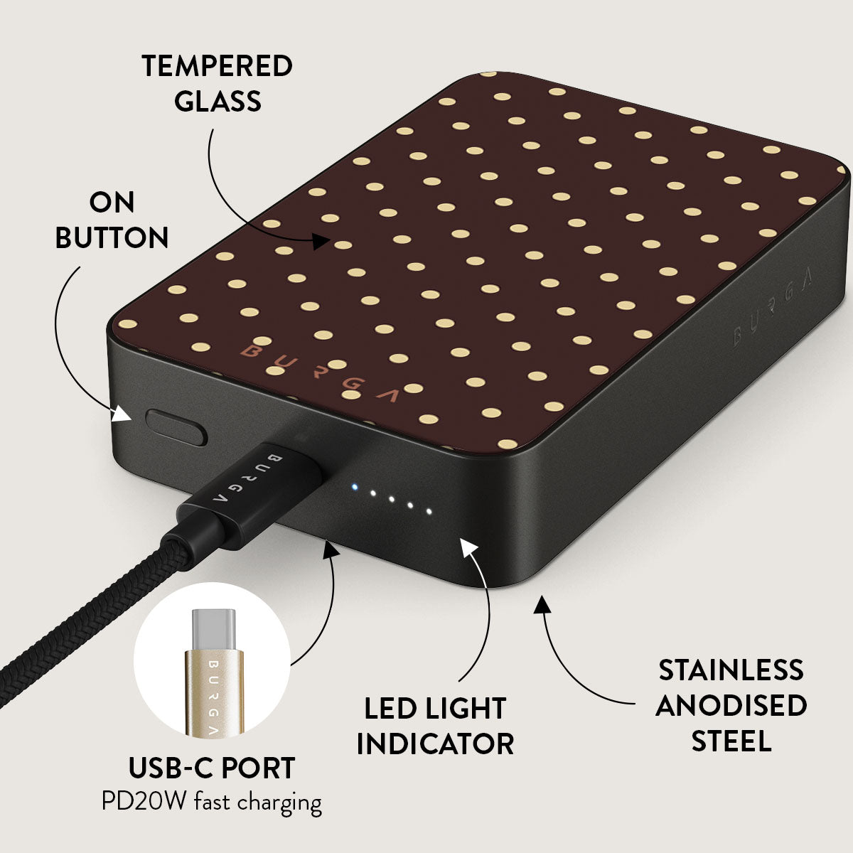 Small but mighty. Stylish but practical. Meet the new and improved BURGA Magnetic Power Bank – your pocket-sized savior with a 5.000 / 10.000 / 15.000 mAh punch. It’s where sleek design meets BURGA’s signature style. made to keep you charged and turning heads wherever you go.