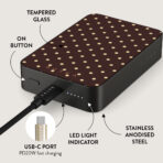 • Fast-Charge: The power bank via a USB-C input port (60W-2V0/3A Type C to C cable included). Keep an eye on your energy reserves with the remaining power indicator lights.
