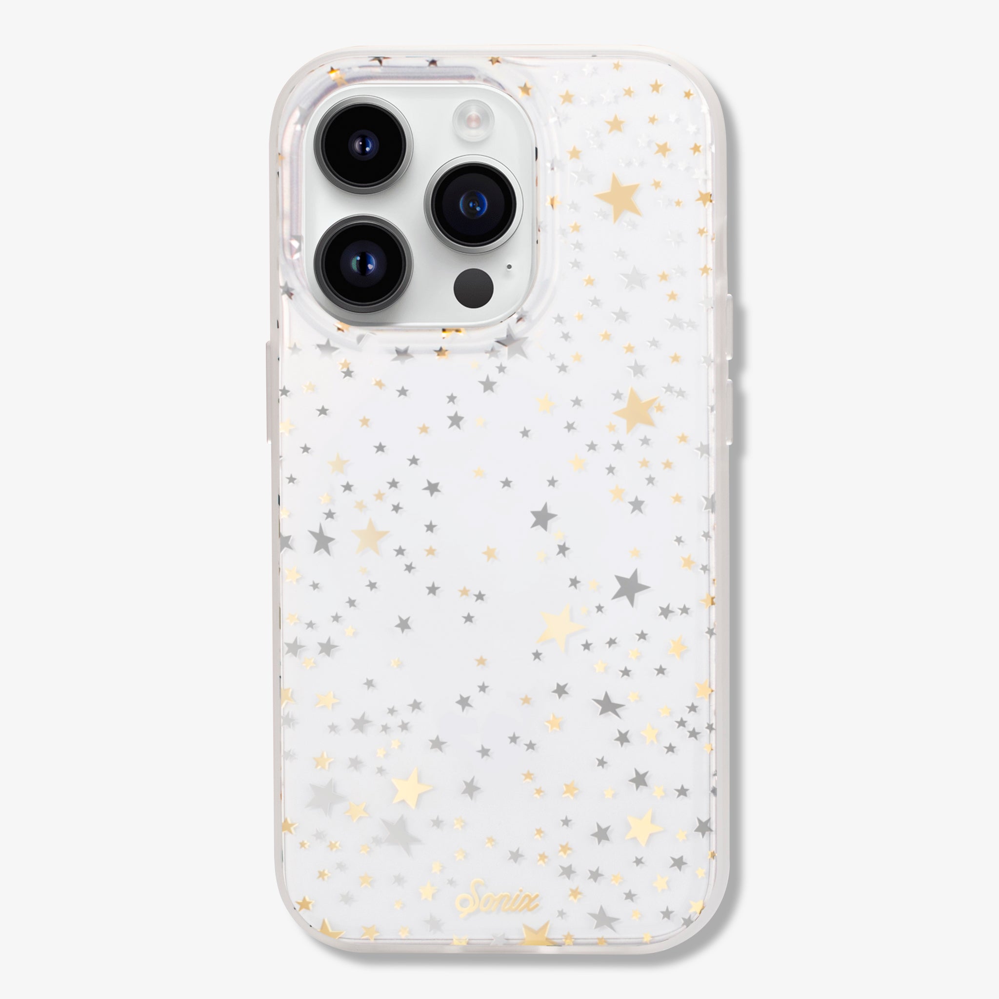 Gold foil stars on a clear case to show off your phone color