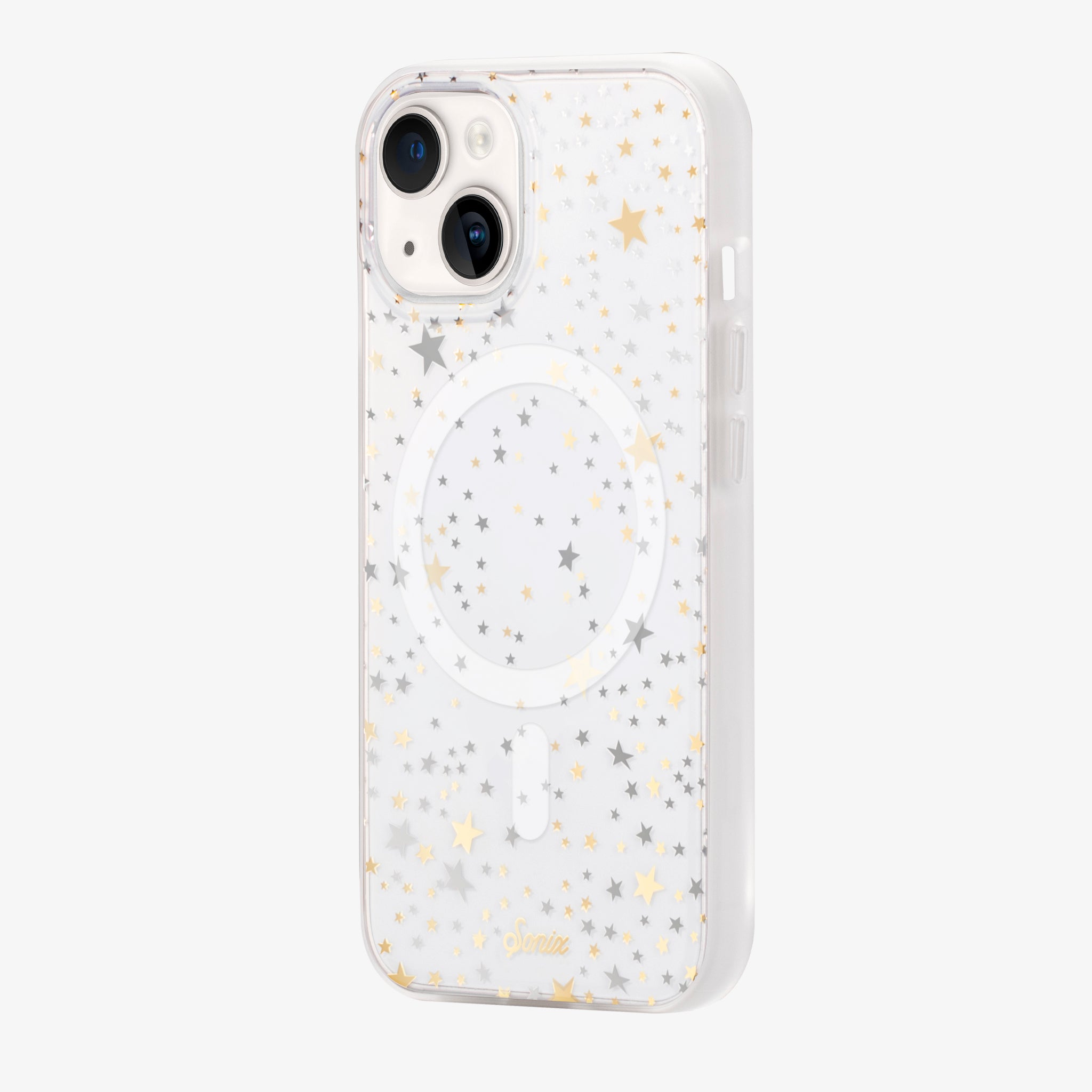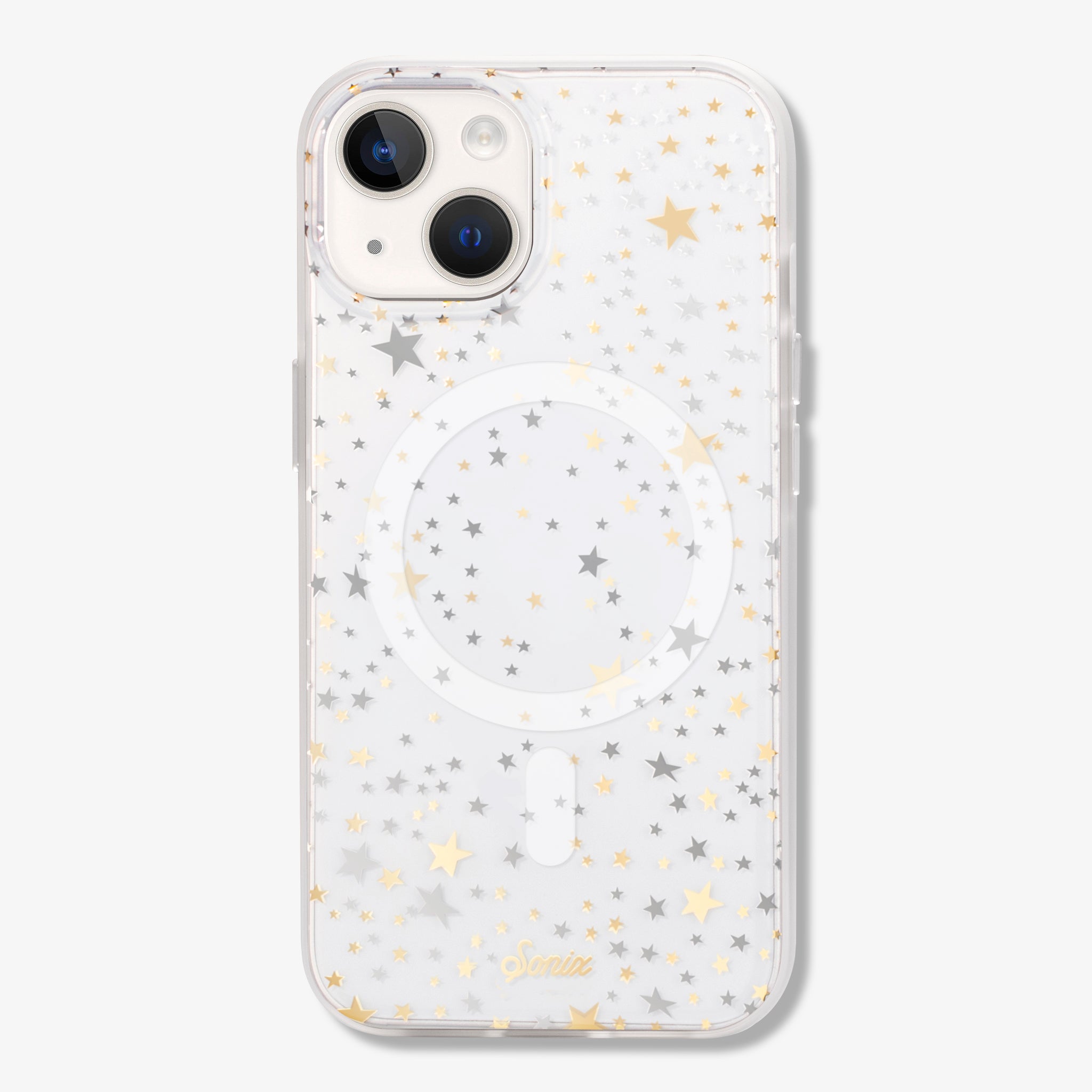 Starry Night. MagSafe® Compatible iPhone Case is a clear coat case with gold and silver stars. made for all those star lovers.