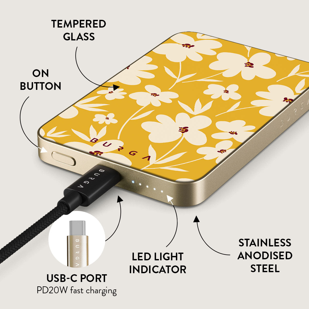 Small but mighty. Stylish but practical. Meet the new and improved BURGA Magnetic Power Bank – your pocket-sized savior with a 5.000 / 10.000 / 15.000 mAh punch. It’s where sleek design meets BURGA’s signature style. made to keep you charged and turning heads wherever you go.