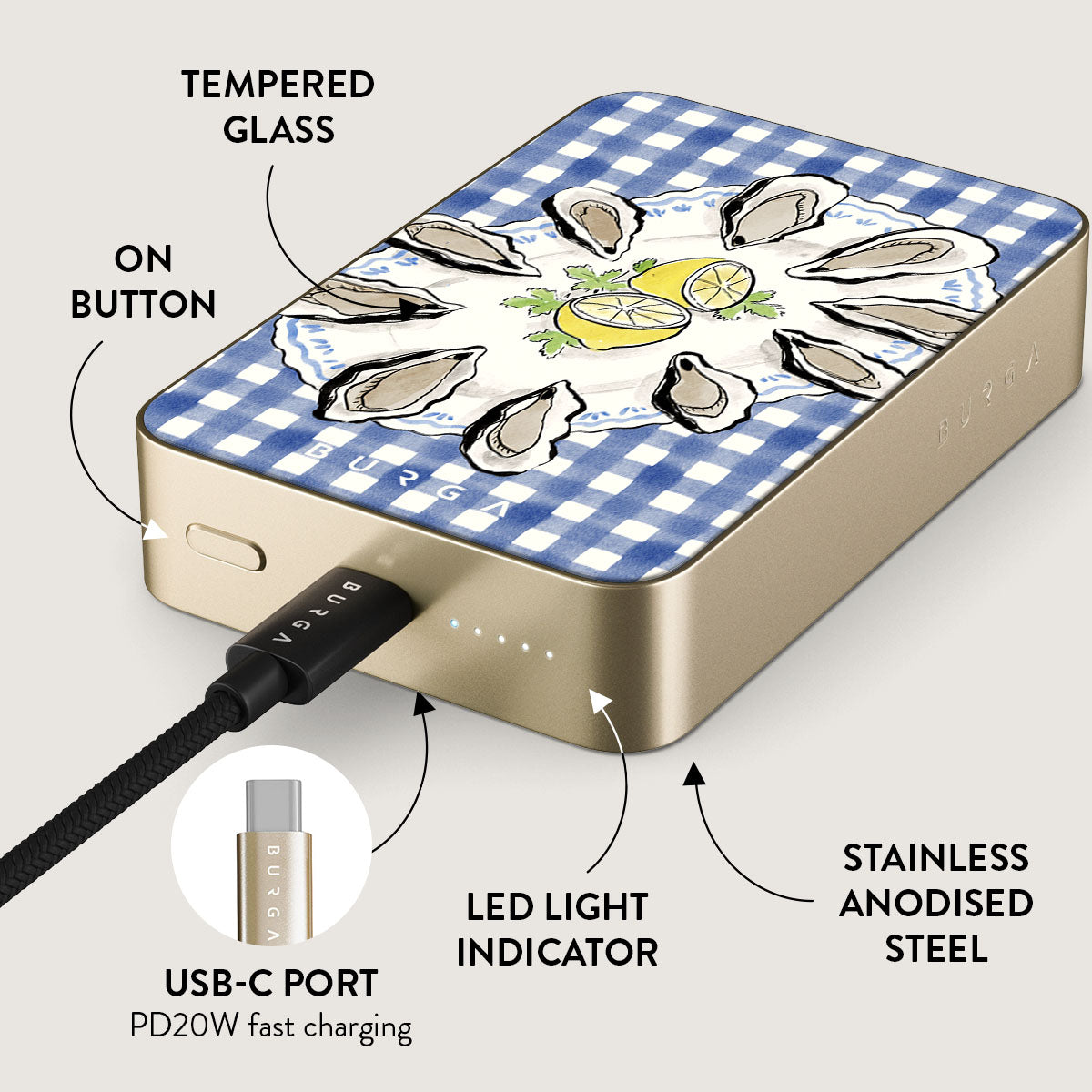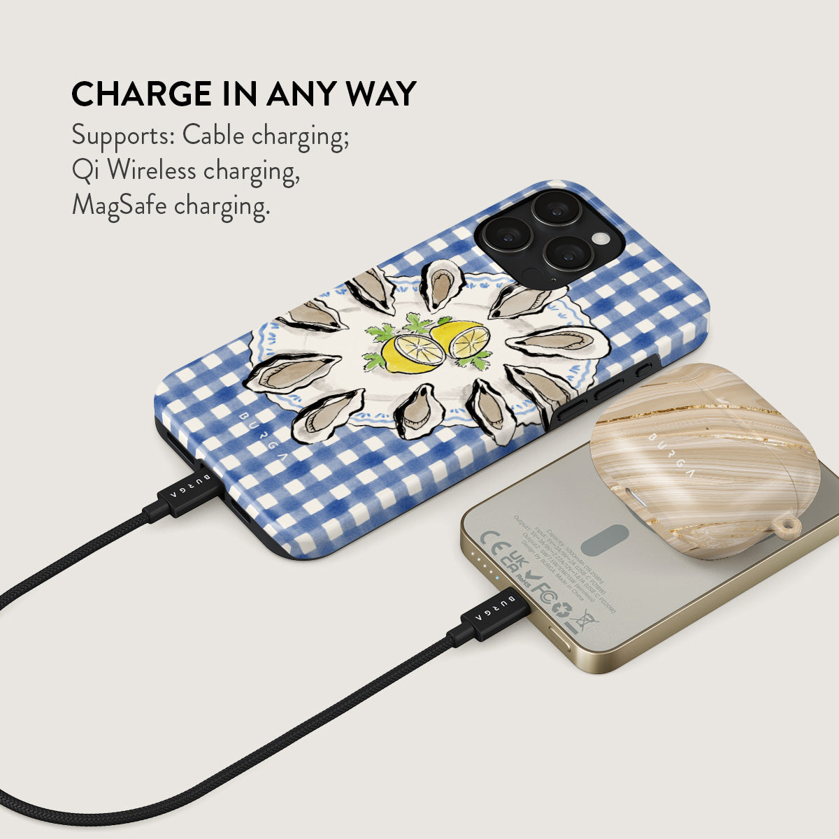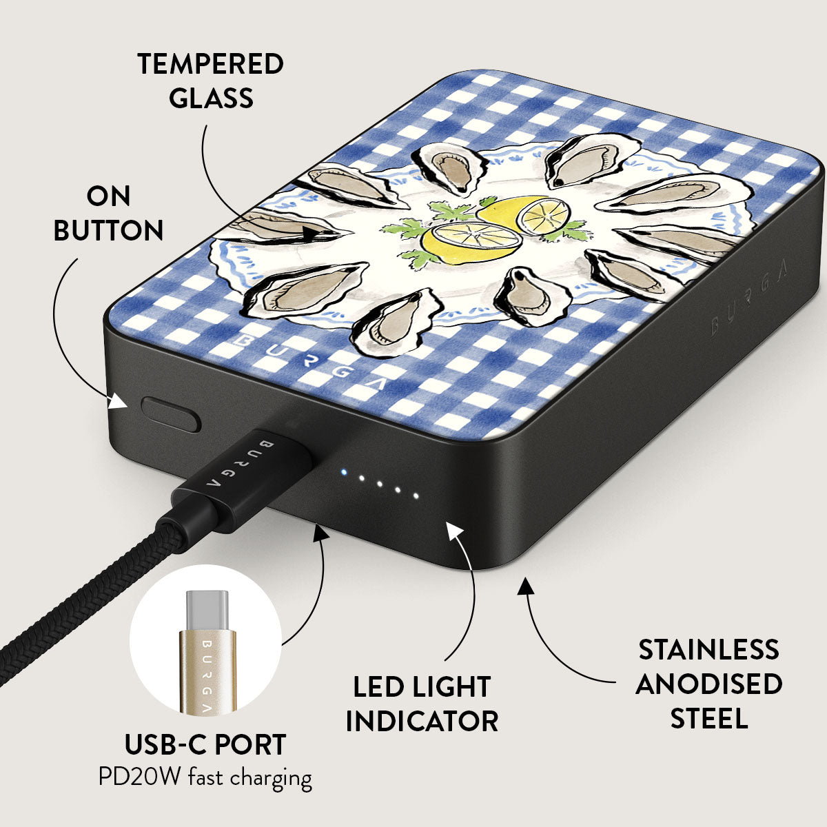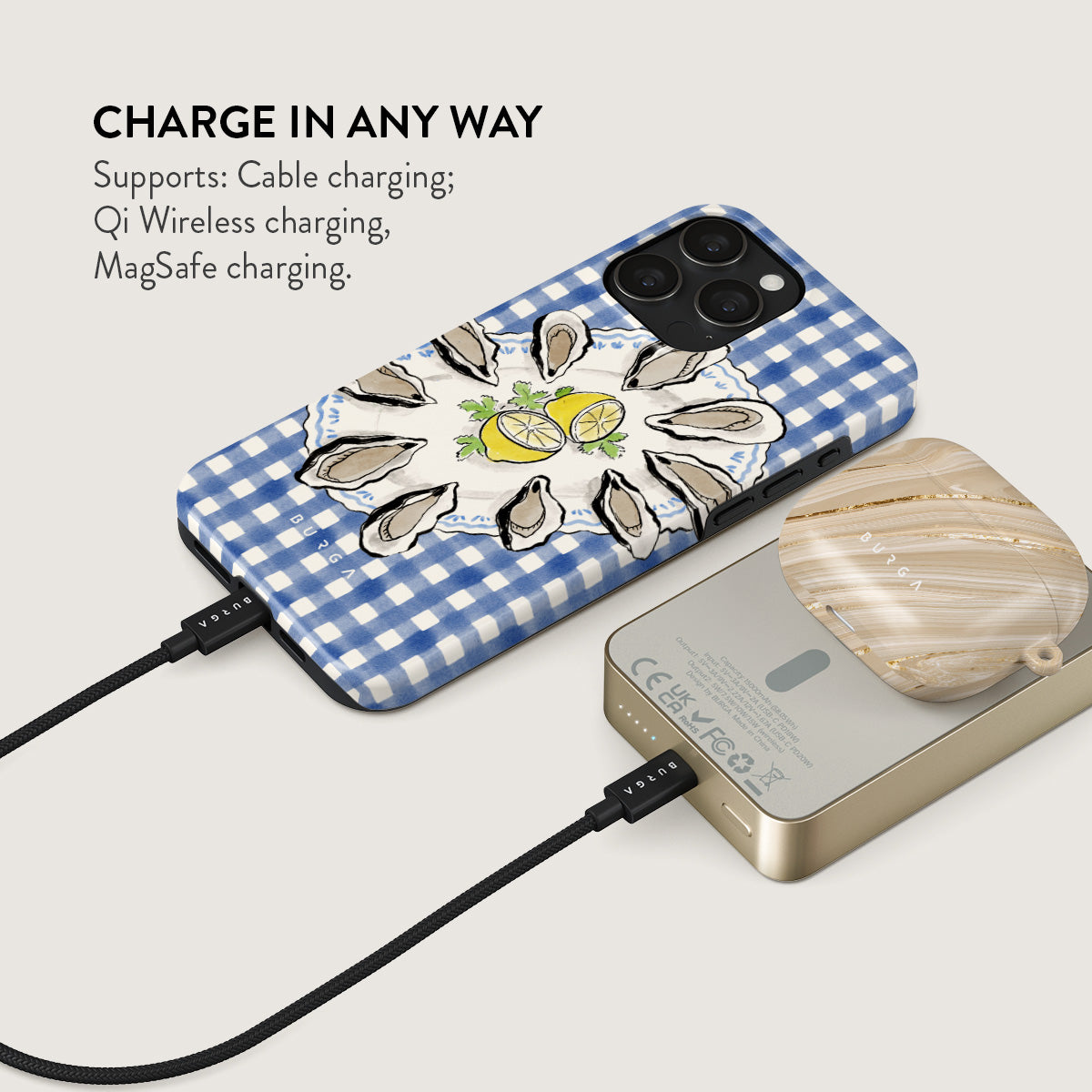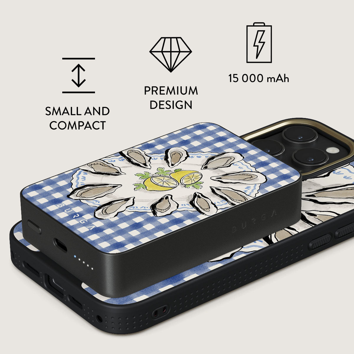 Small but mighty. Stylish but practical. Meet the new and improved BURGA Magnetic Power Bank – your pocket-sized savior with a 5.000 / 10.000 / 15.000 mAh punch. It’s where sleek design meets BURGA’s signature style. made to keep you charged and turning heads wherever you go.