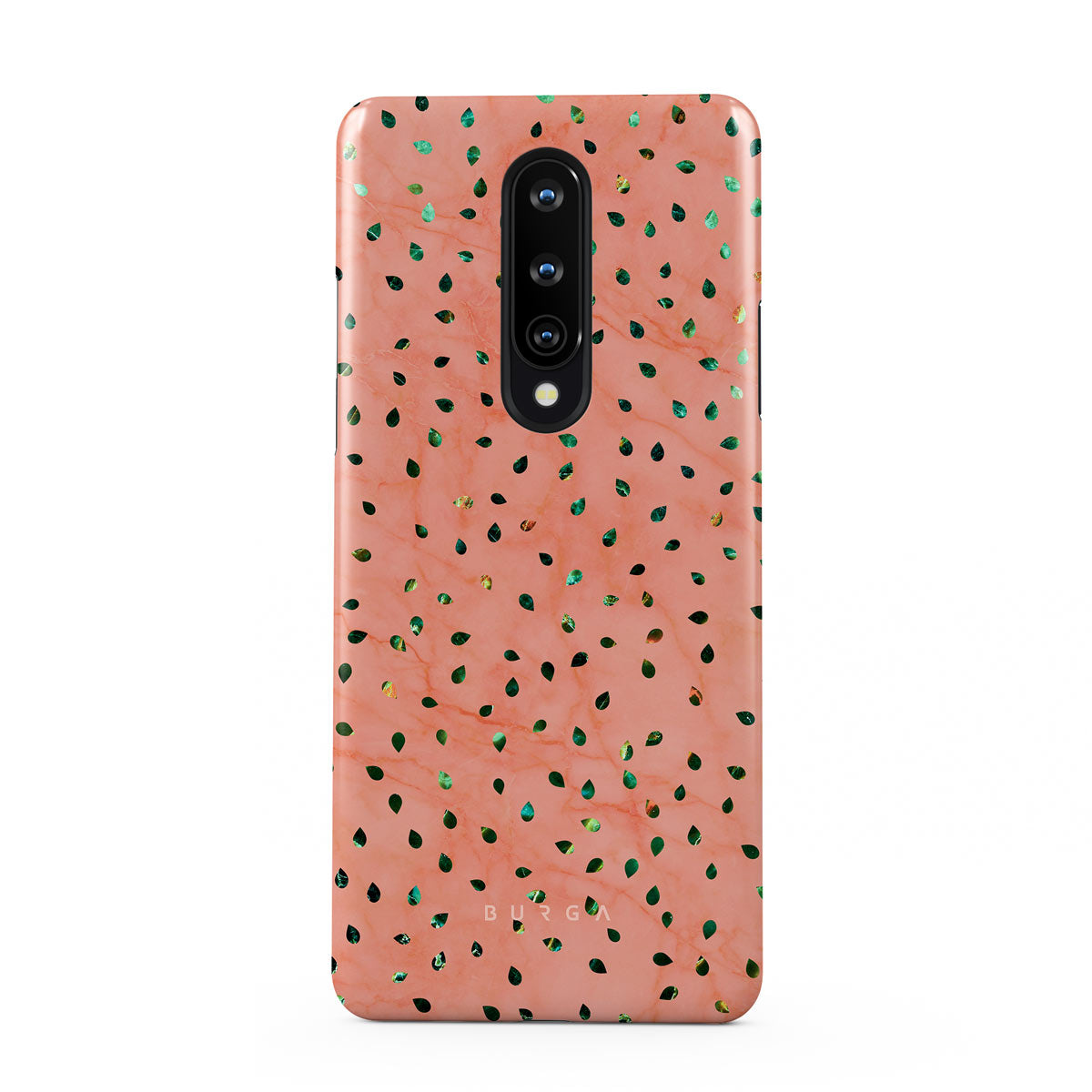 The Watermelon Shake OnePlus 8 phone case offers a playful take on design merging. The watermelon seed-like specks showcase striking tropical design fragments that add a splash of color to the fresh and breezy coral pink marble. This way. the funny protective phone cover becomes a perfect statement piece for your summer outfits.